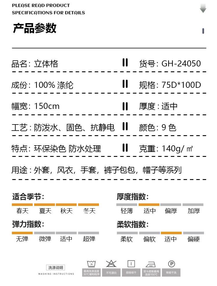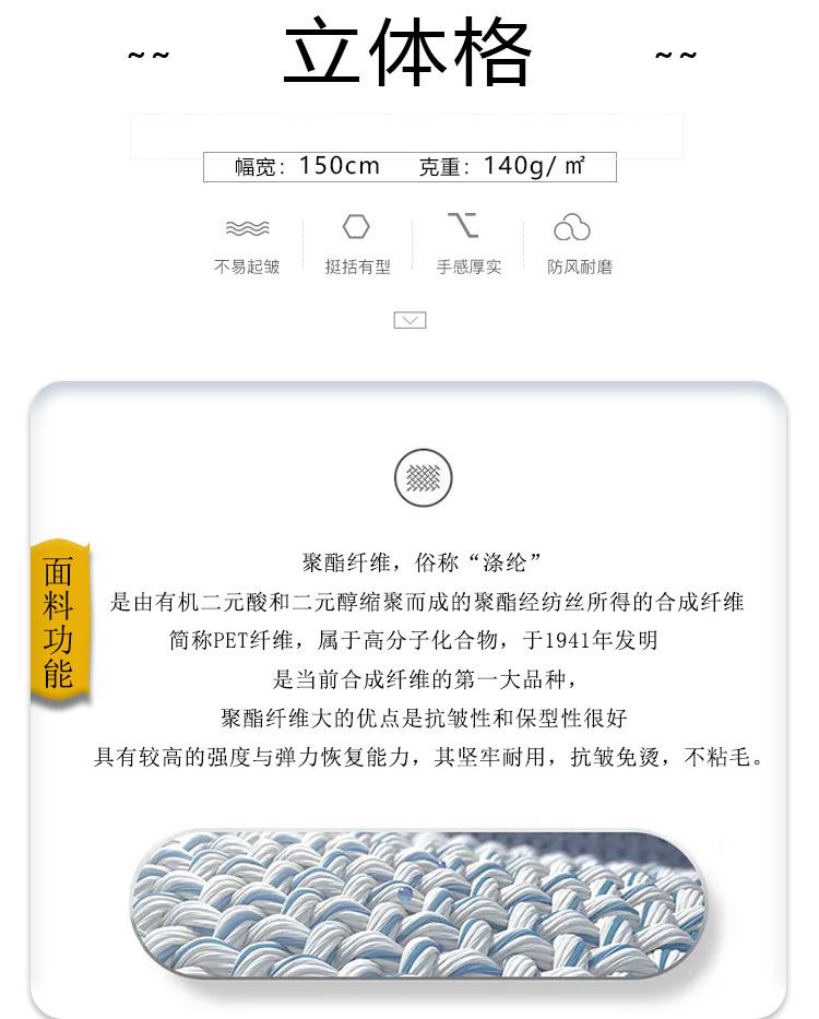 Bolso de mano de poliéster tejido a cuadros 75D tridimensional a cuadros impermeable casual abrigo pantalones sombrero tela
