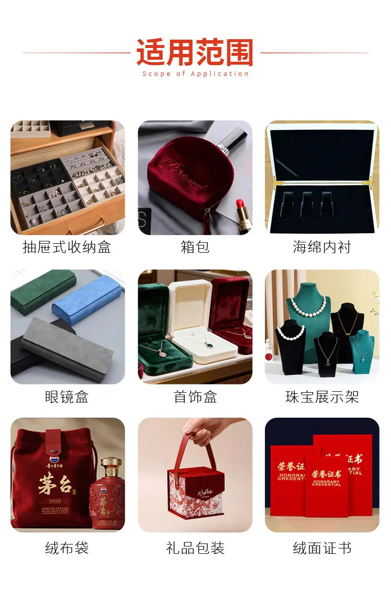 Tela Flocking Autoadhesiva Preferida de Pelo Corto No Tejida Terciopelo de un Lado Embalaje para Joyero Forrado con Tela de Fondo con Adhesivo Inferior