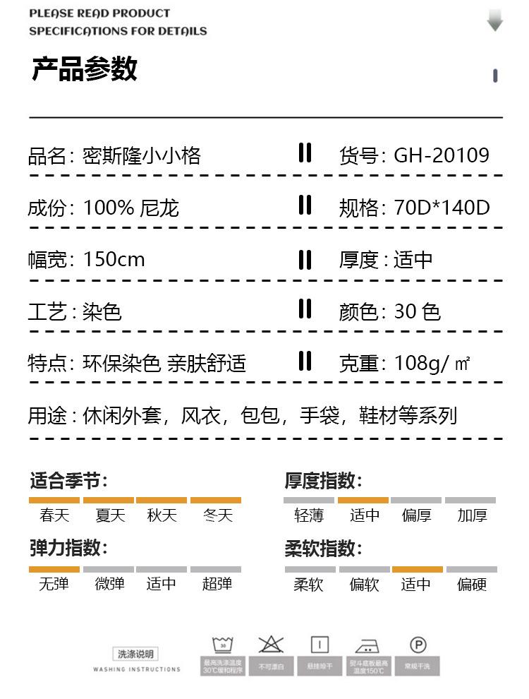 Tejido de nailon a cuadros para guantes de trabajo 70D muslong cuadros pequeños chaqueta casual pantalones cortos tejido