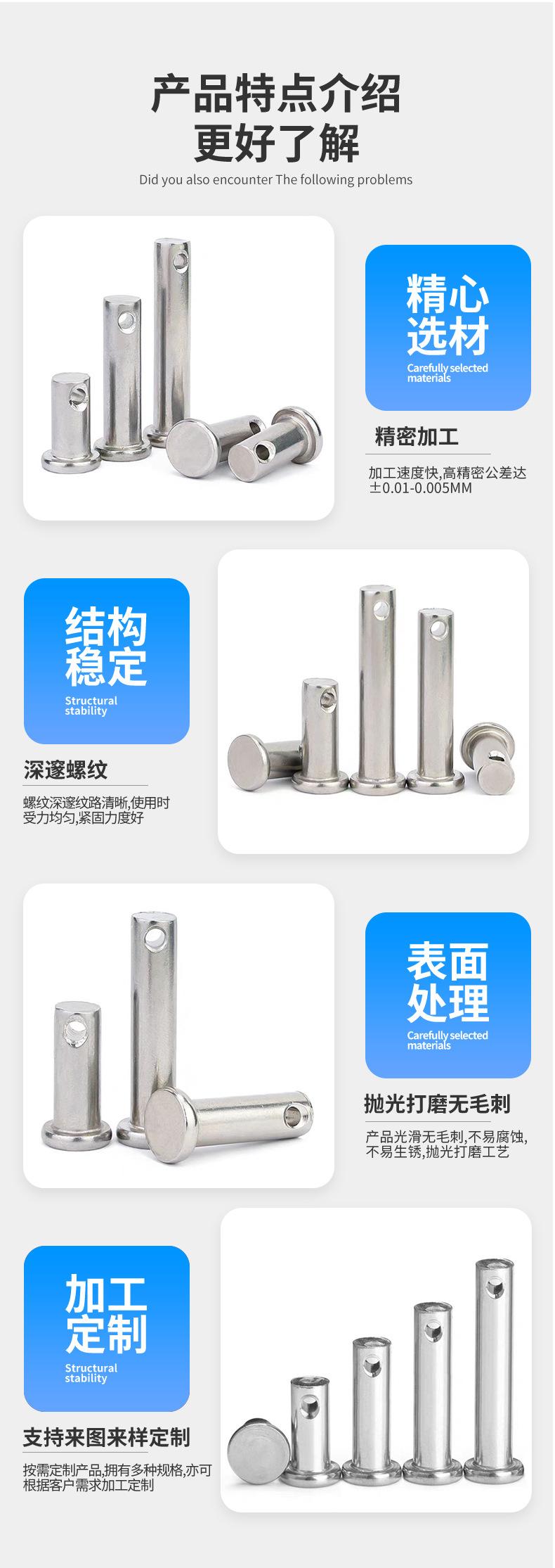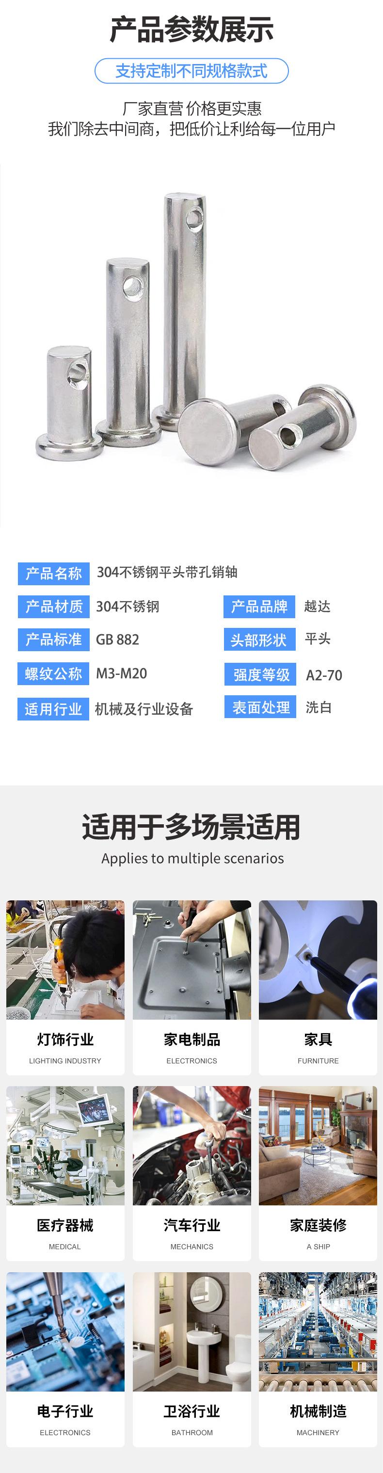Pasador de Cabeza Plana de Acero Inoxidable 304 con Orificio/Pasador Hendido de Acero Inoxidable con Orificio Pasador Cilíndrico M3-M20