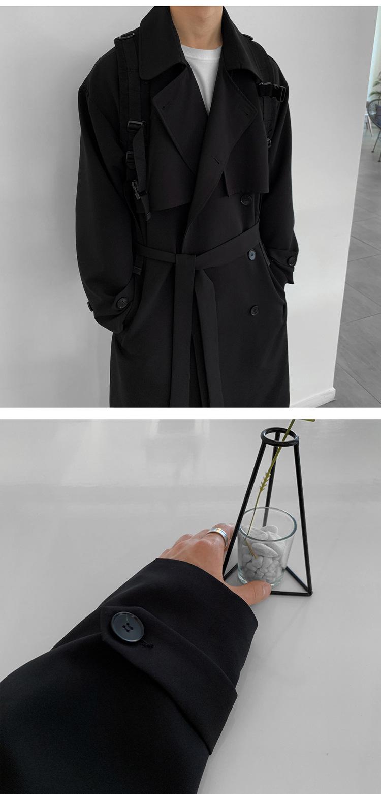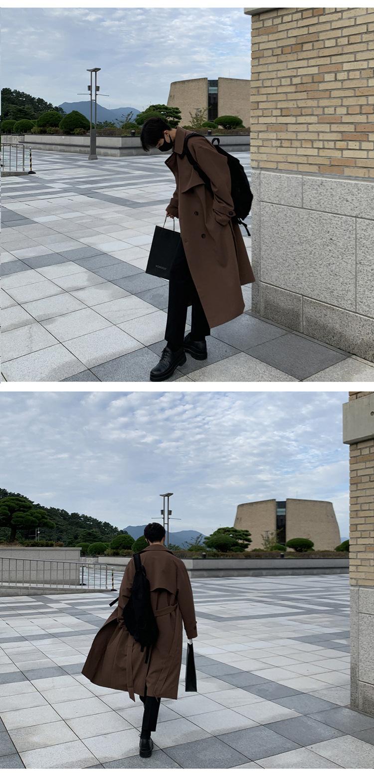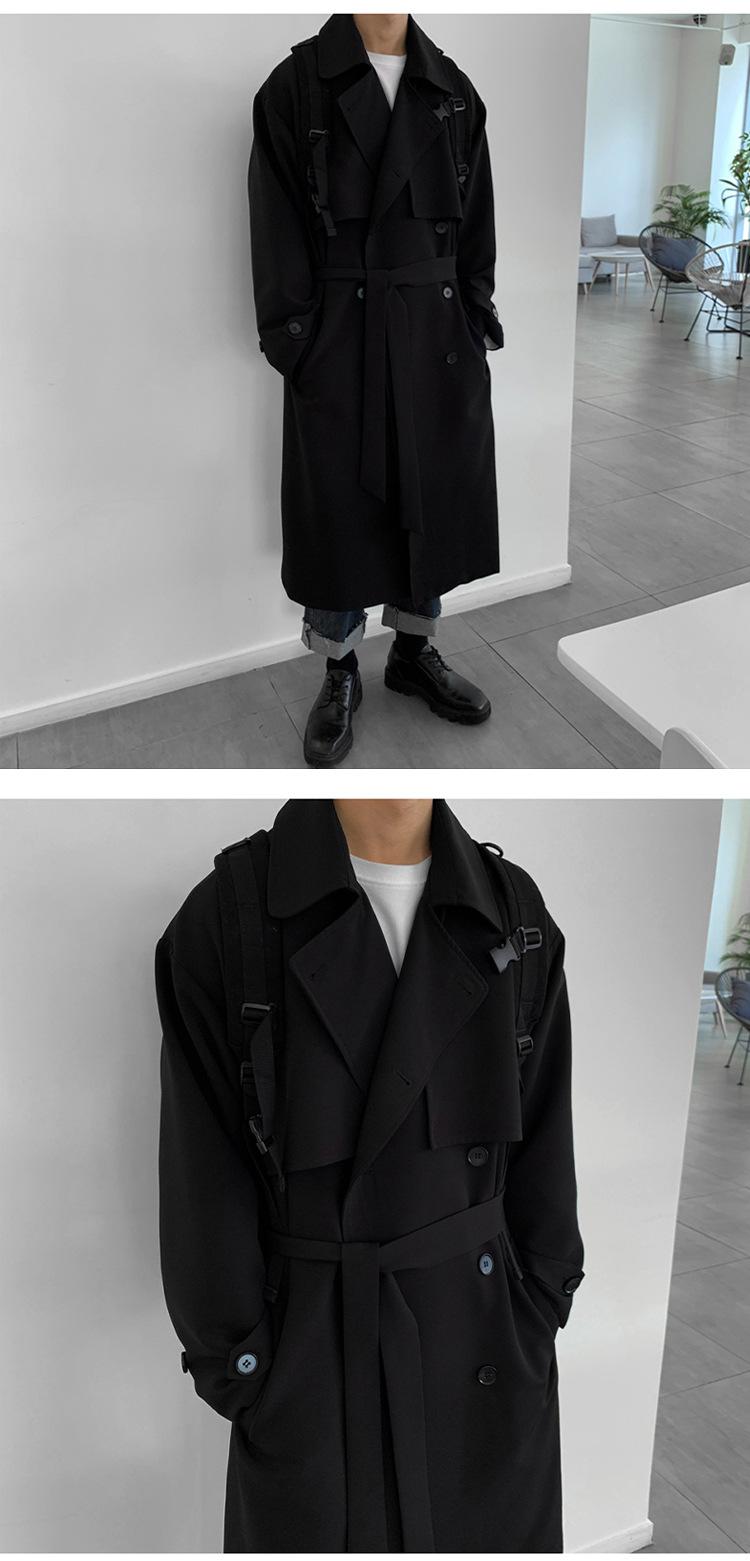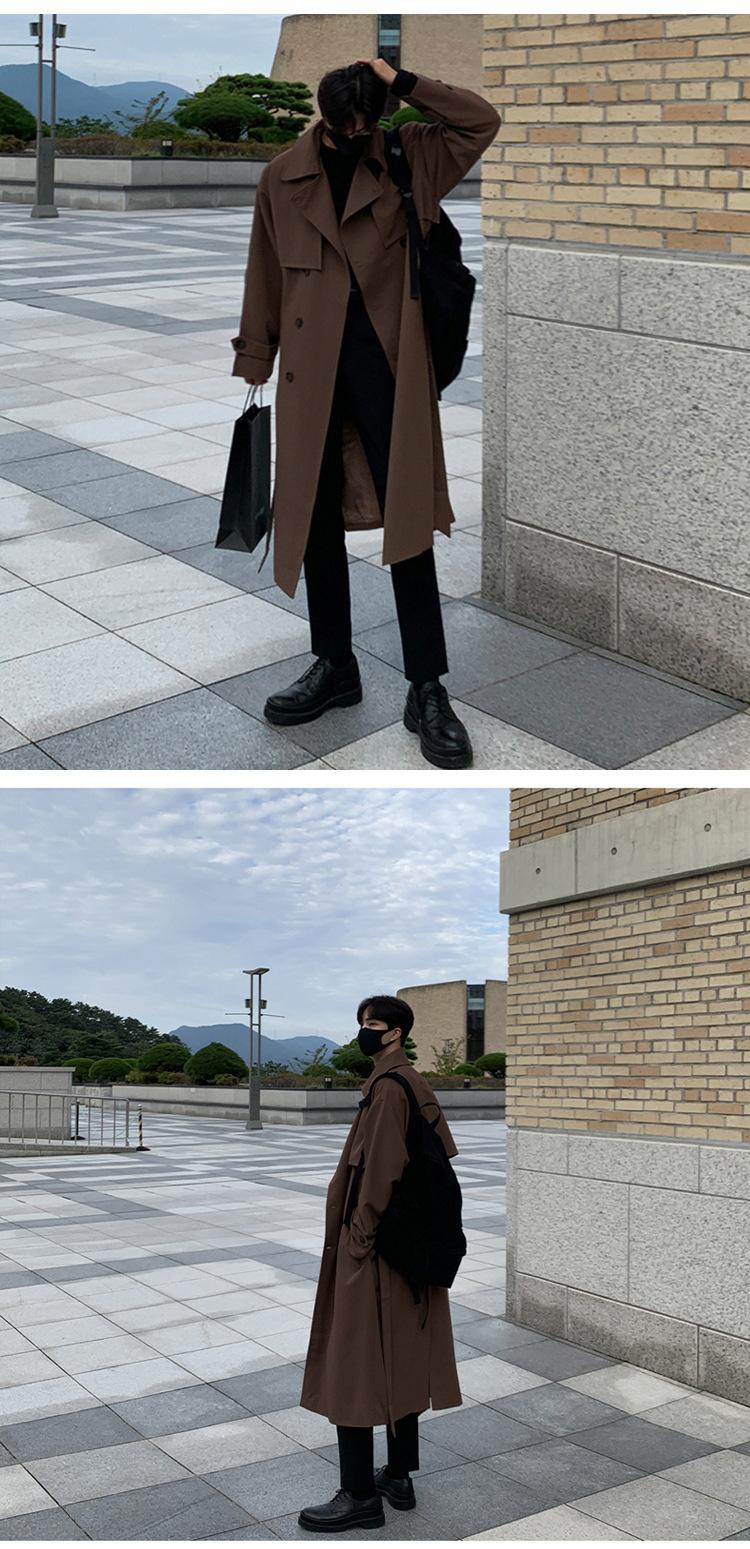 Abrigo largo y holgado de algodón de color liso informal de estilo británico con doble botonadura para hombre, invierno 2021