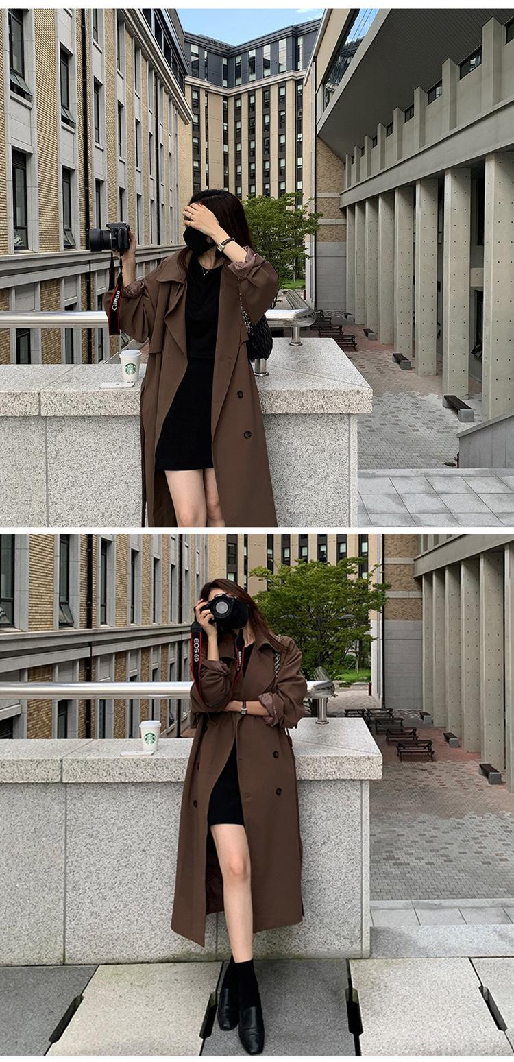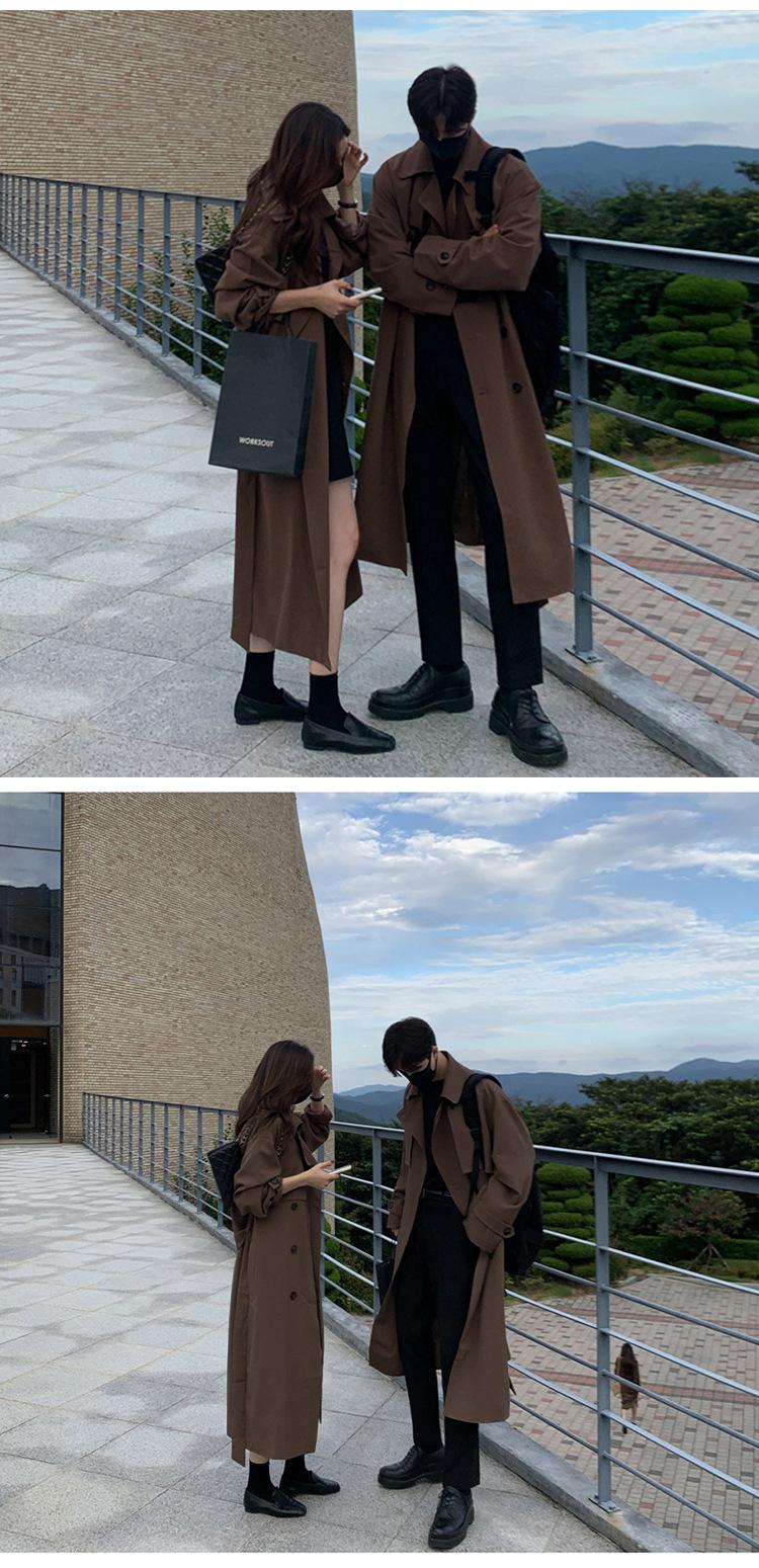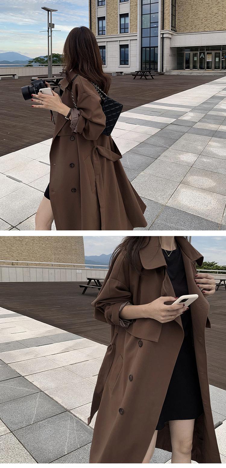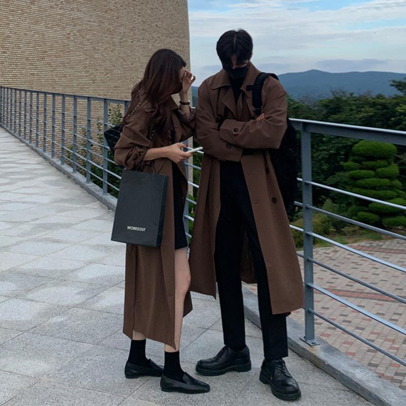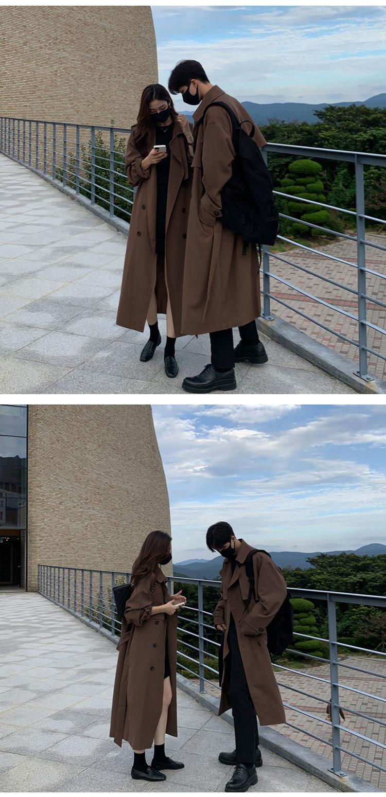 Abrigo largo y holgado de algodón de color liso informal de estilo británico con doble botonadura para hombre, invierno 2021