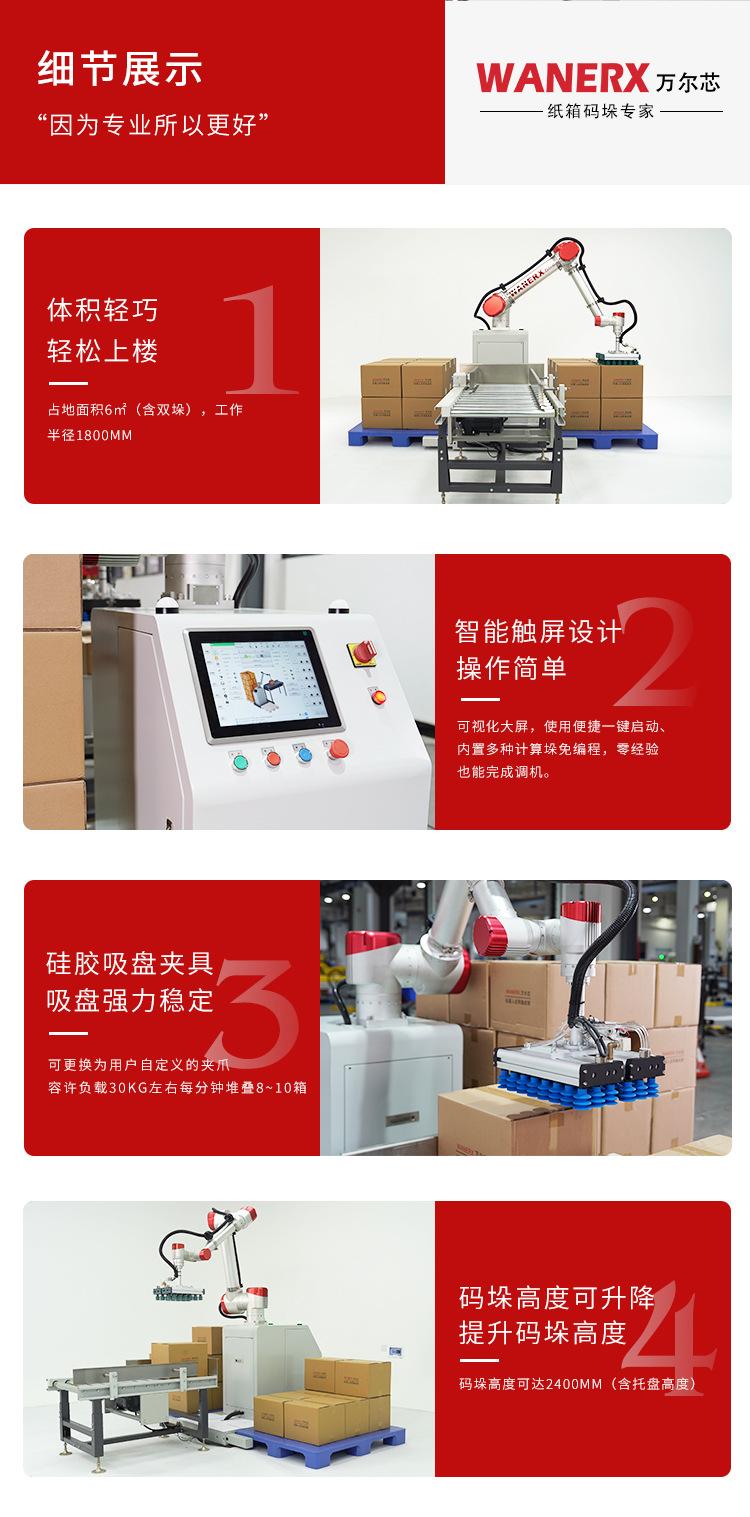 Máquina Paletizadora de Grado Industrial para Cajas de Cartón, Sacos y Barriles, Tipo Universal Paletizado Apilado Automático 30kg Máquina Paletizadora Colaborativa