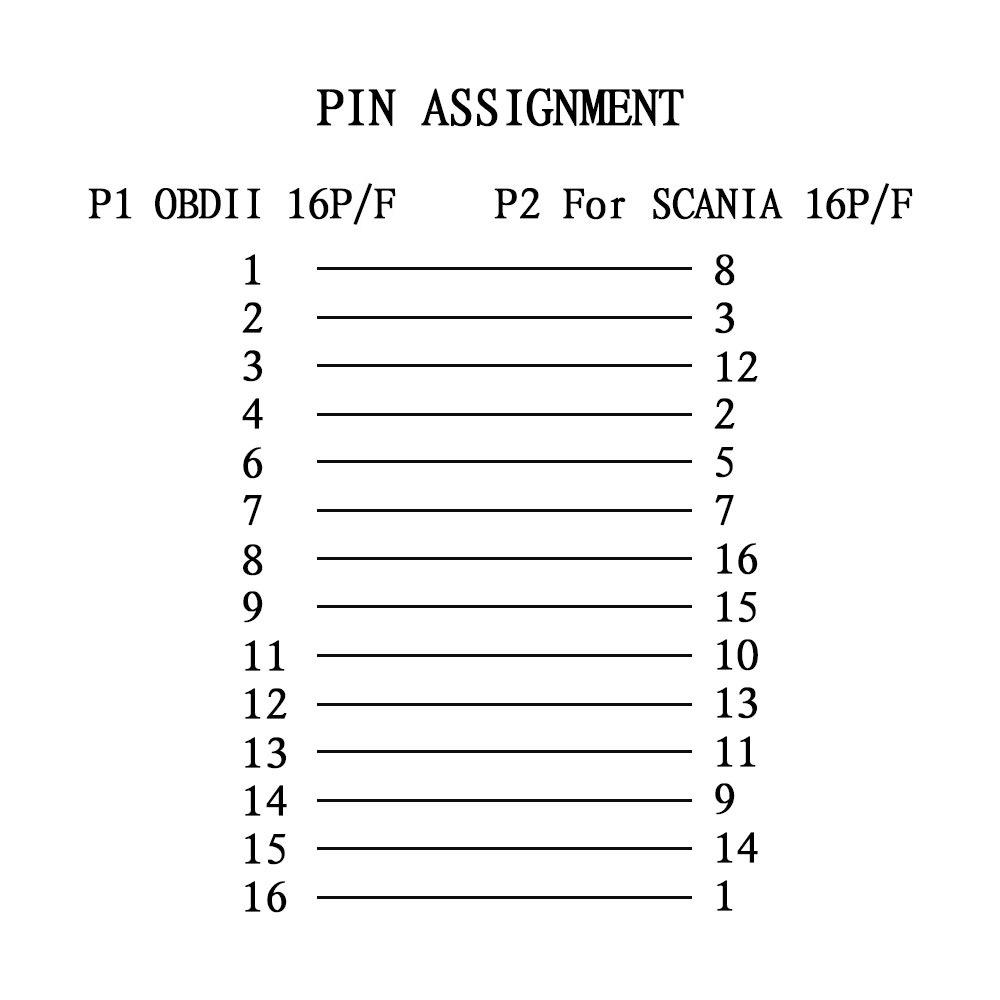 Cable para Camión OBD1 a OBD2 para Scania 16 Pines Hembra a OBD2 16 Pines Hembra