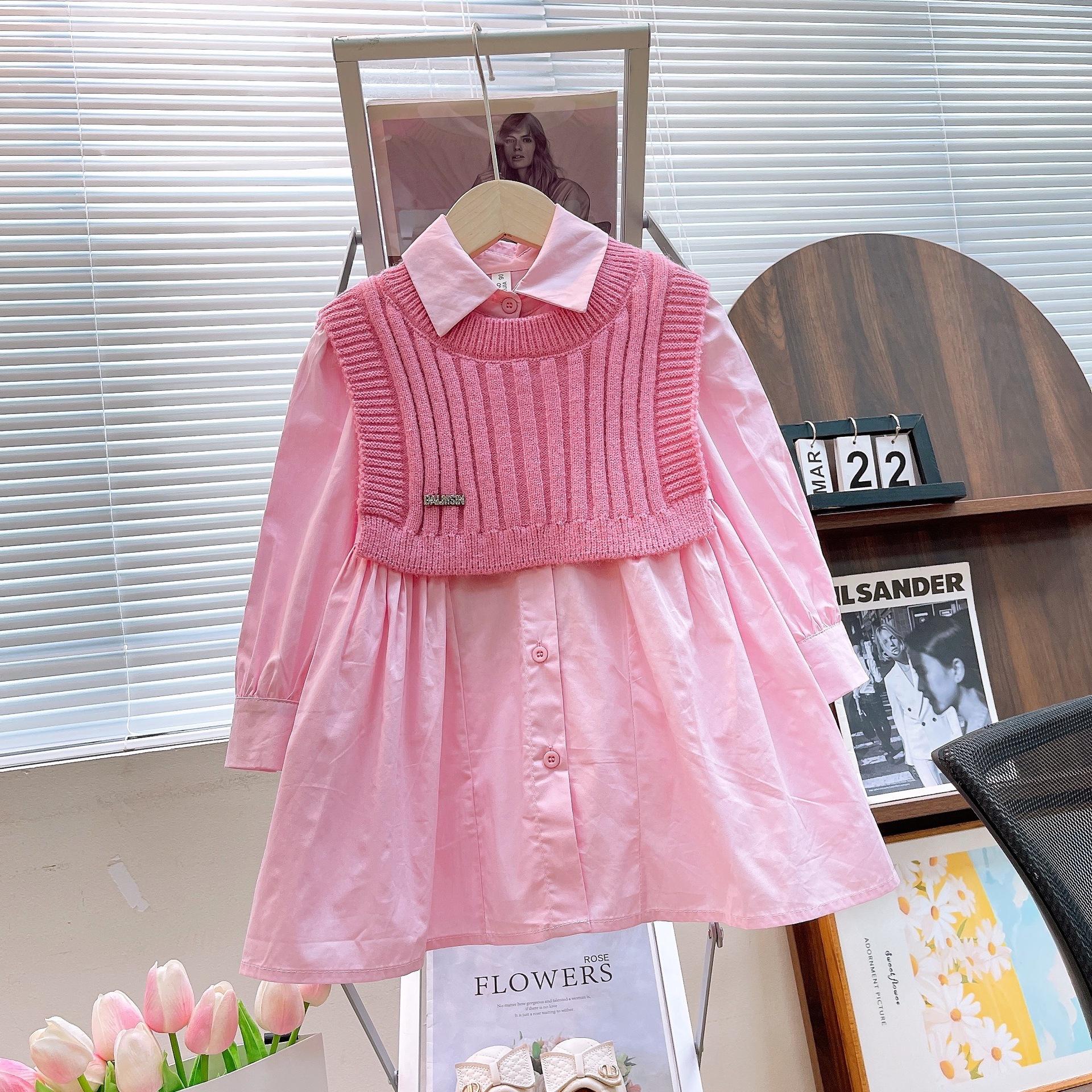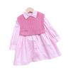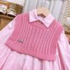 Venta al por mayor de ropa infantil transfronteriza Trajes para niñas Otoño e Invierno 25 Nuevas Camisas Vestidos Tejidos Chaleco Conjunto de dos piezas