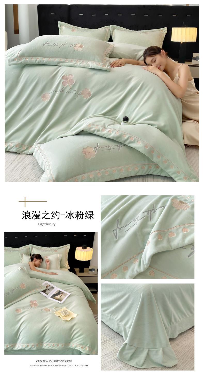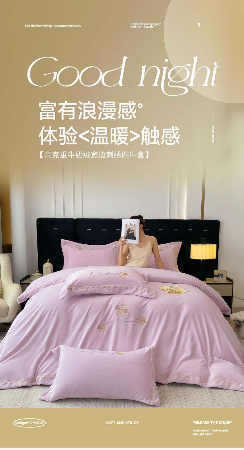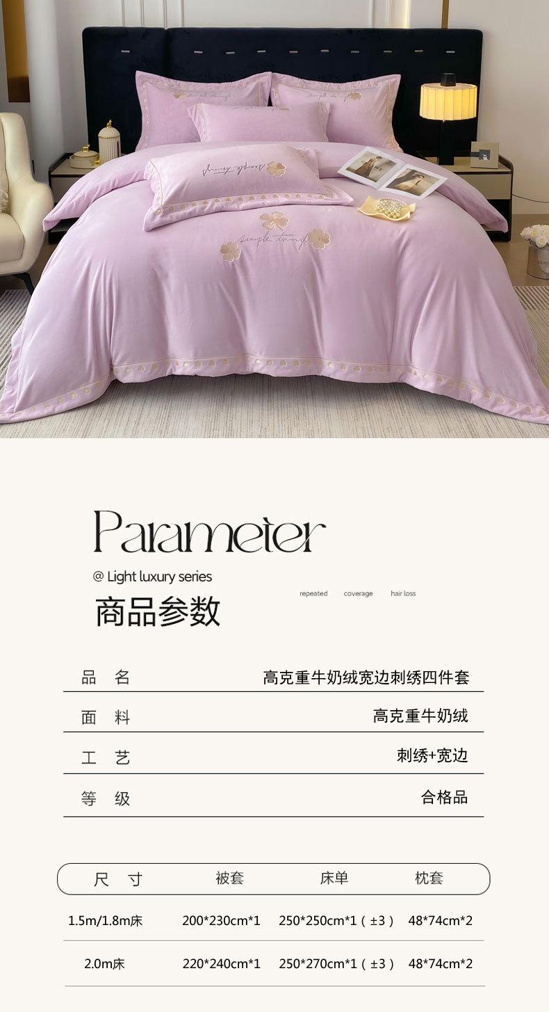 Serie de cuatro piezas con bordado lateral ancho de terciopelo de leche de extinción total y alto peso 2024