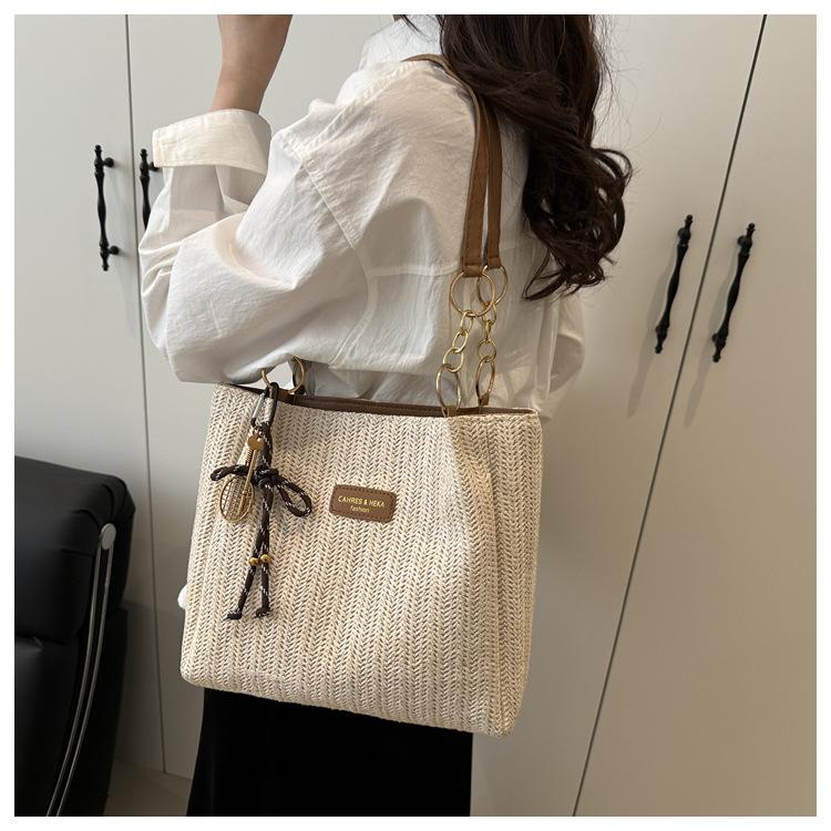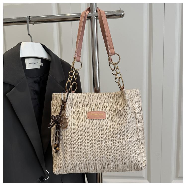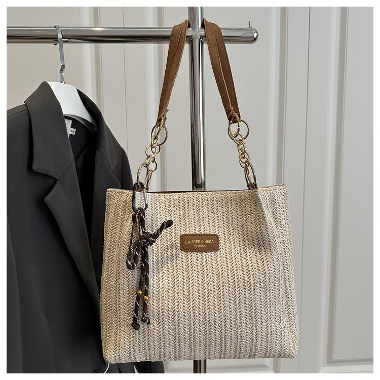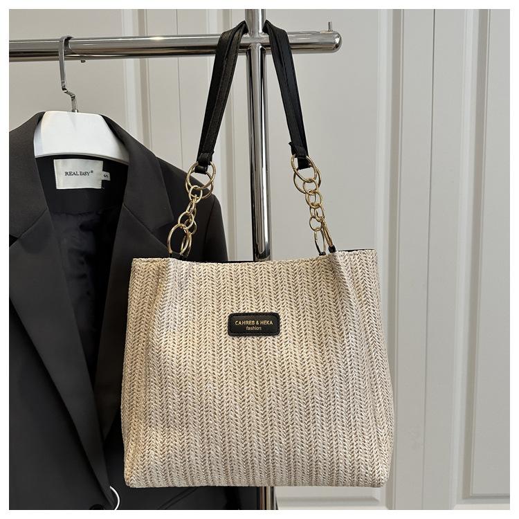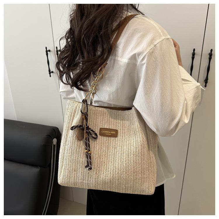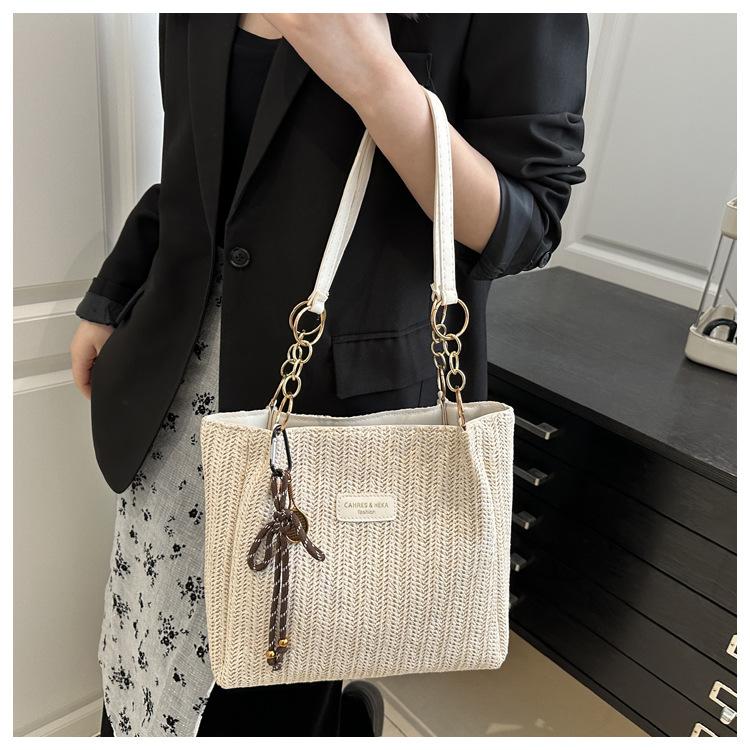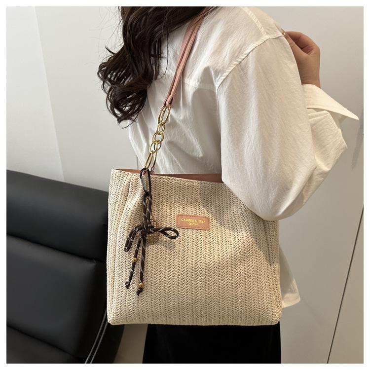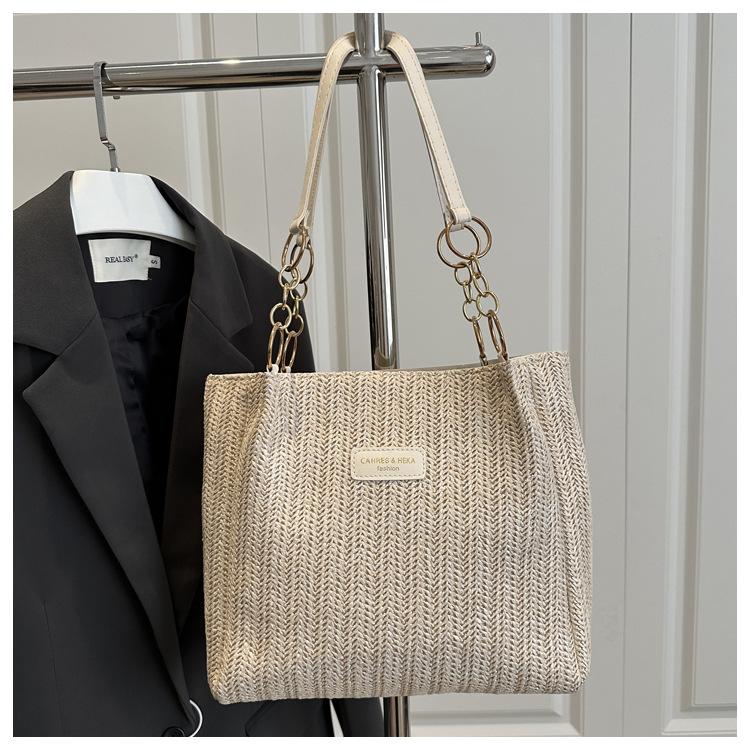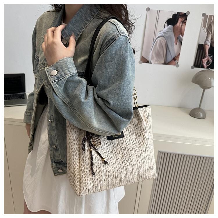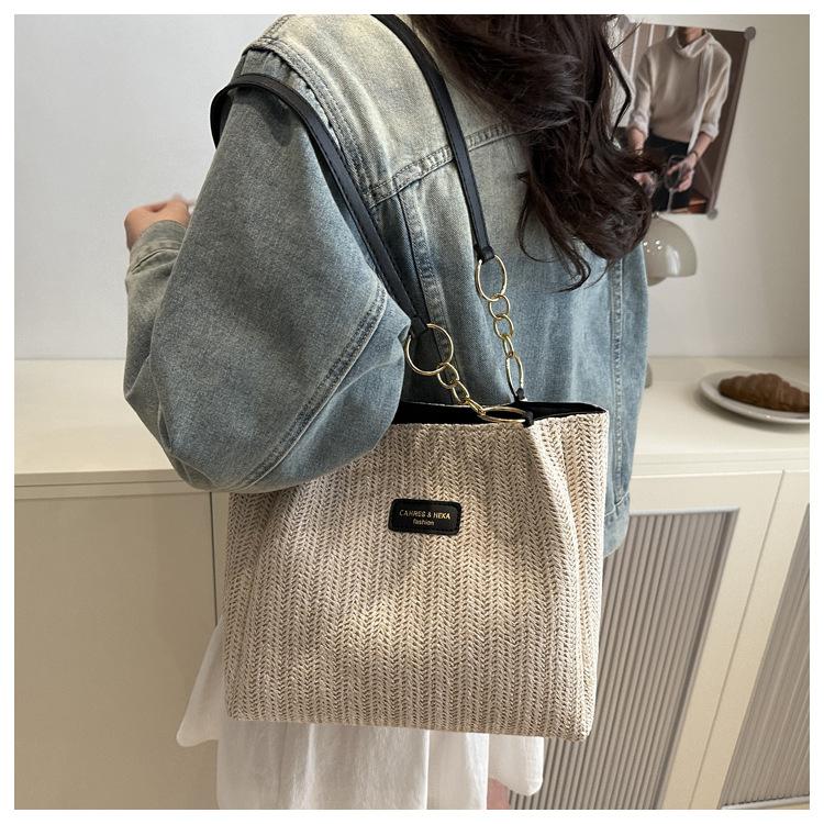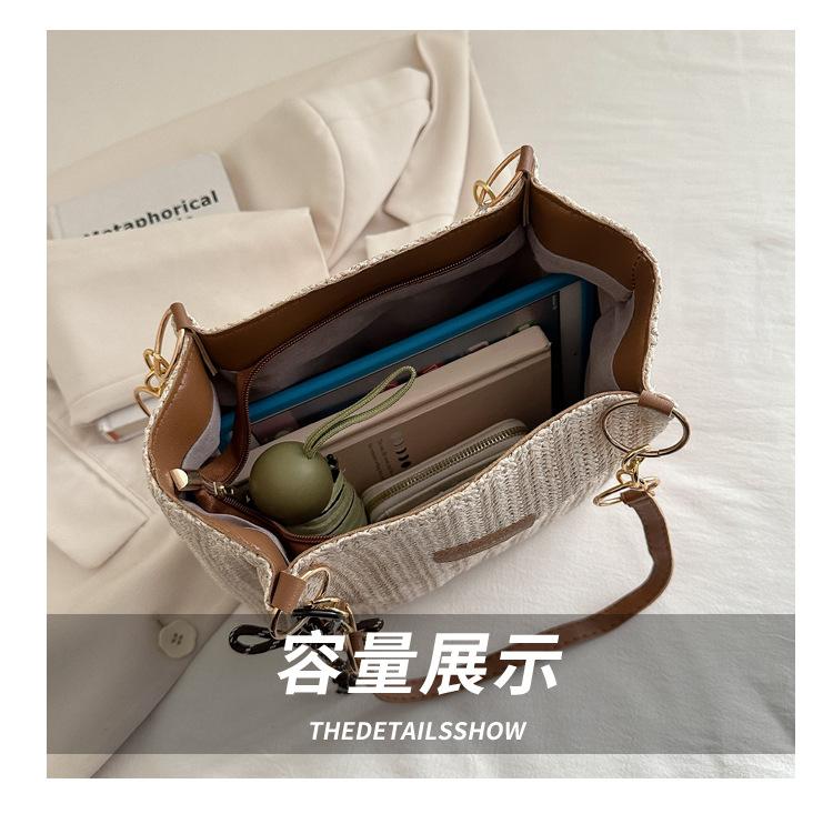 Bolso de Paja de Verano de Gran Capacidad para Mujer 2025 Nuevo Nicho Versátil Bolso Tejido Estilista para Viajero al Trabajo Bolso Tote de Hombro