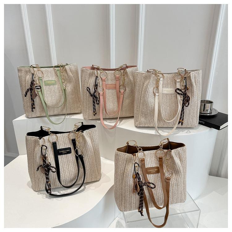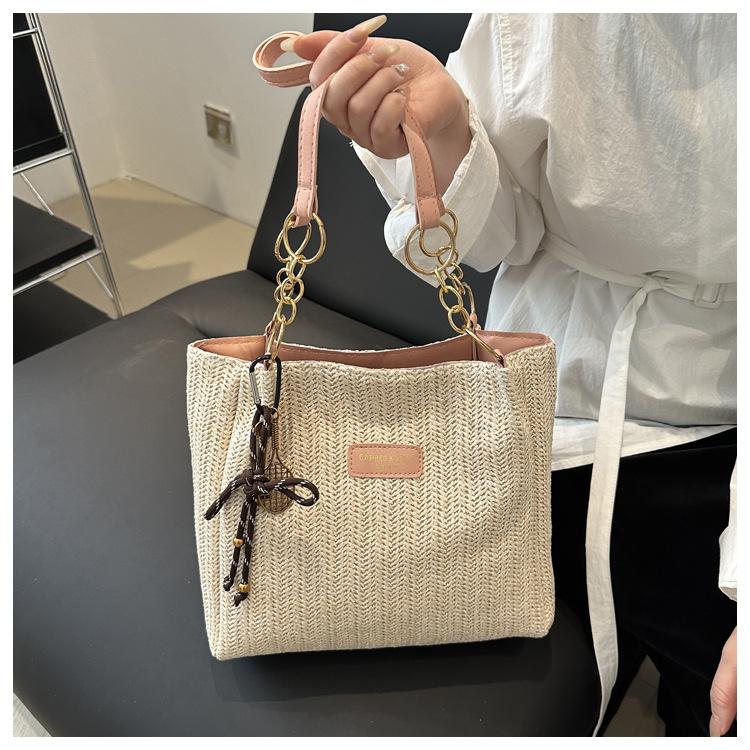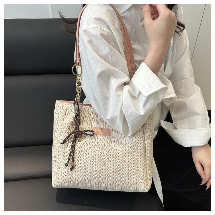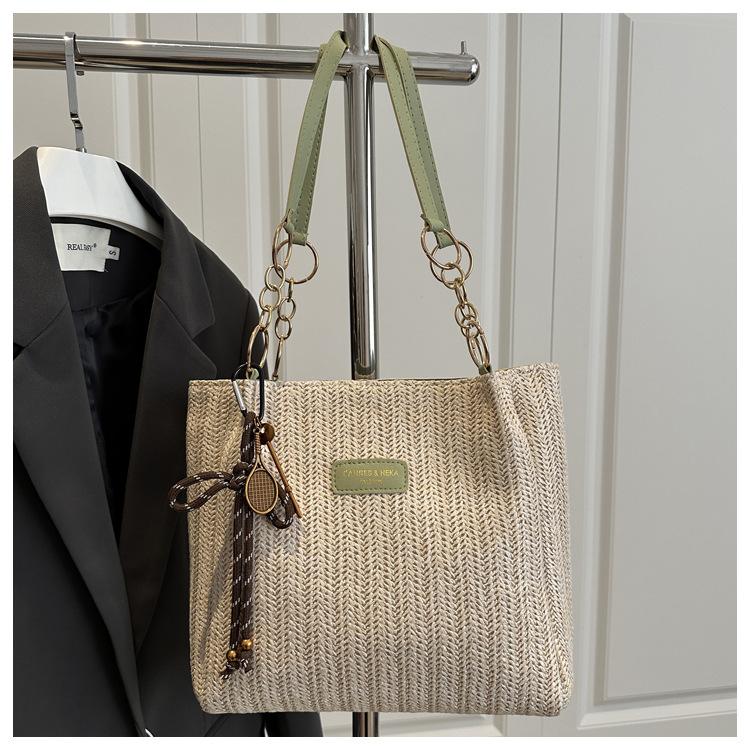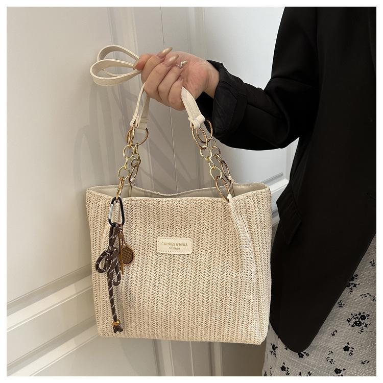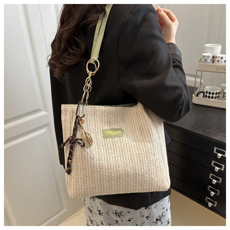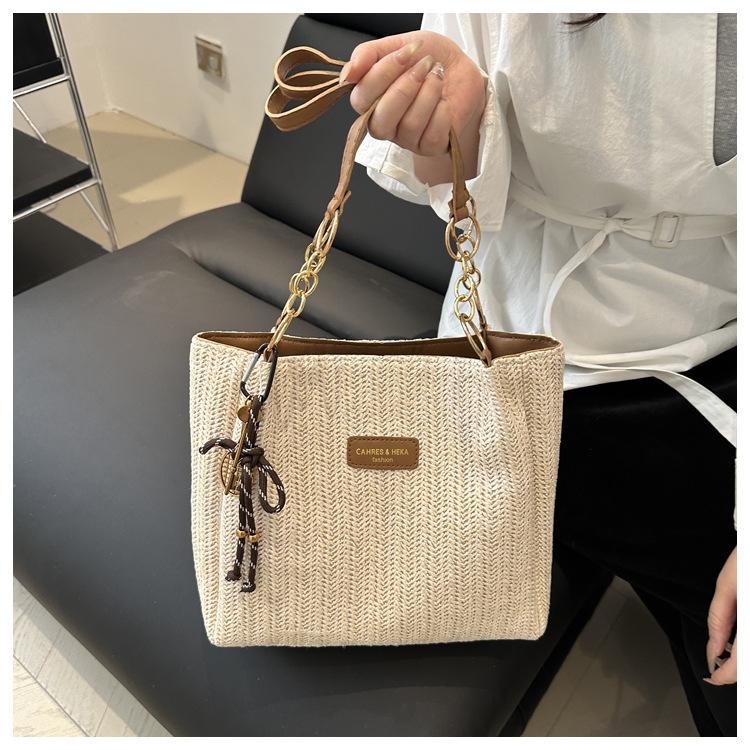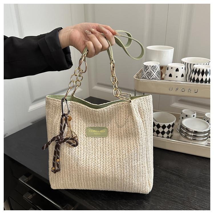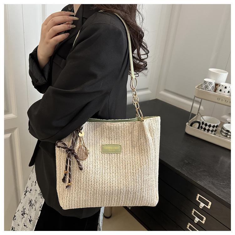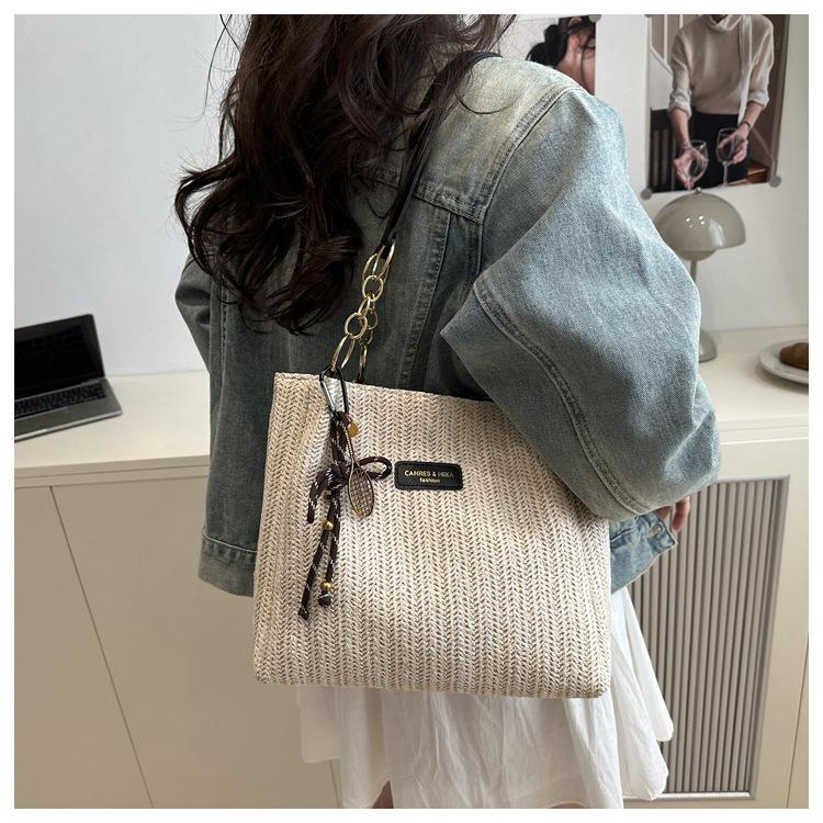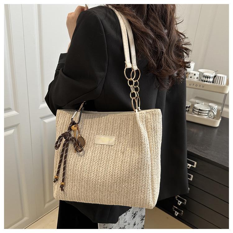 Bolso de Paja de Verano de Gran Capacidad para Mujer 2025 Nuevo Nicho Versátil Bolso Tejido Estilista para Viajero al Trabajo Bolso Tote de Hombro