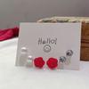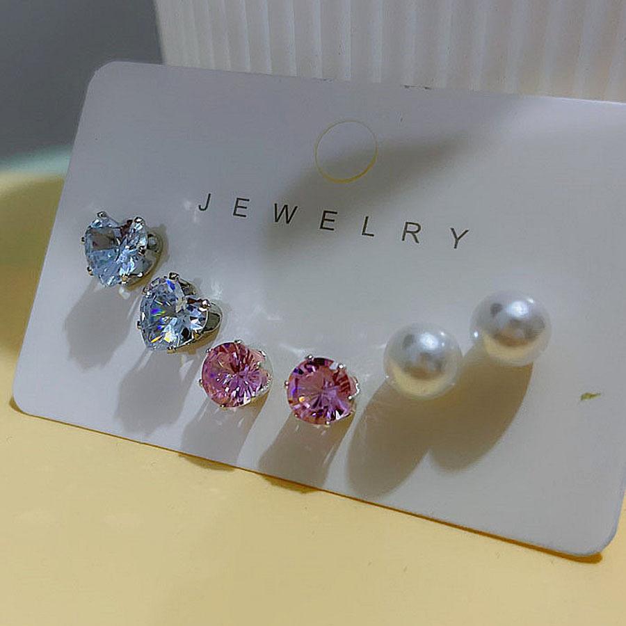 3 pairs of heart-shaped zircon pearl stud earrings set