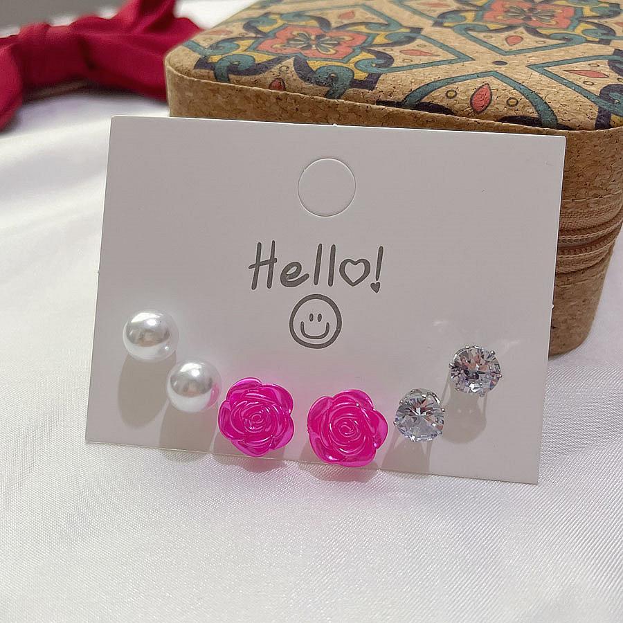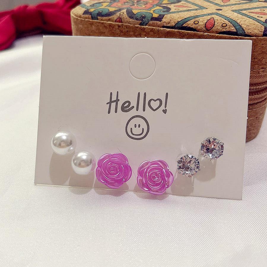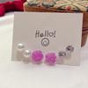 3 pairs of light purple flower pearl stud earrings set