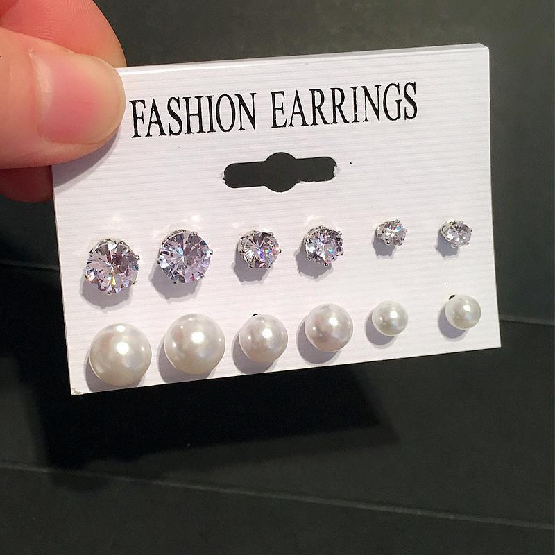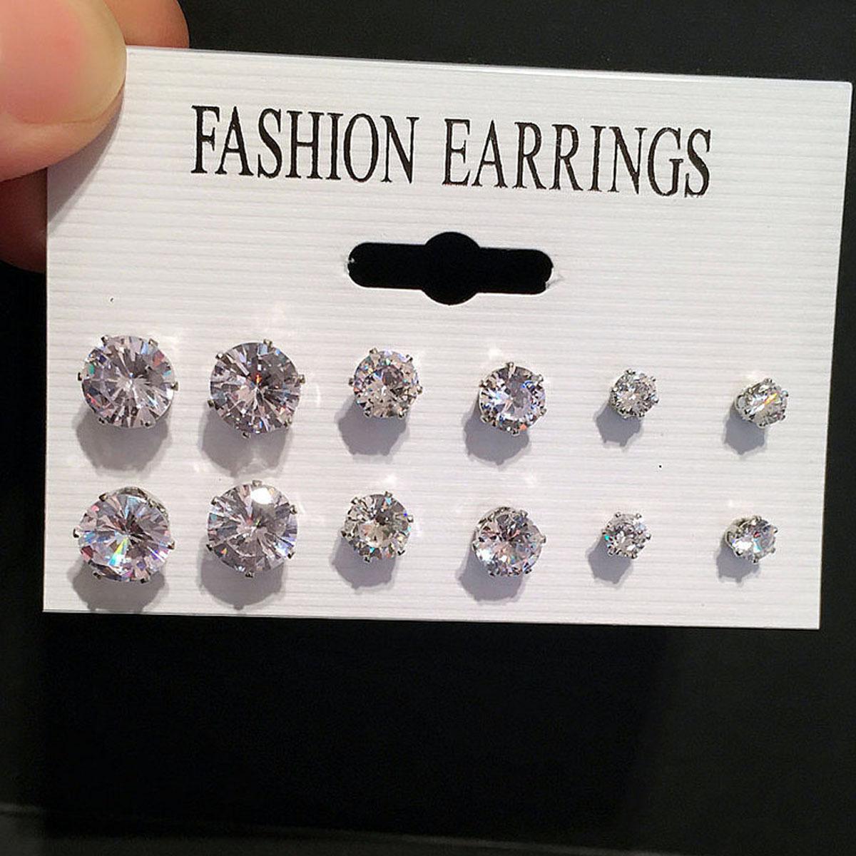 12 pairs of zircon stud earring set, 12 pairs of pearl stud earrings set, 6 pairs of zircon stud earring set, ...