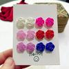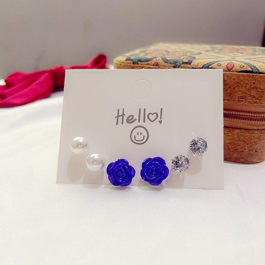 3 pairs of blue flower pearl stud earrings set