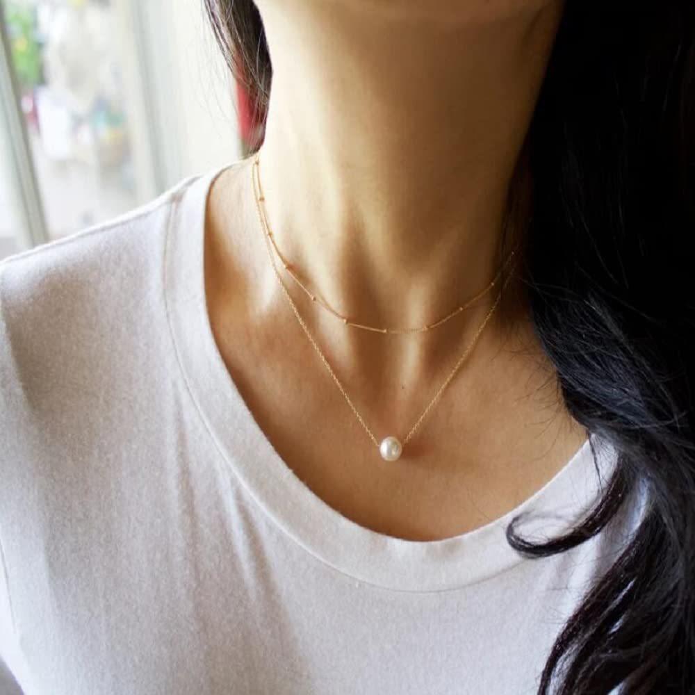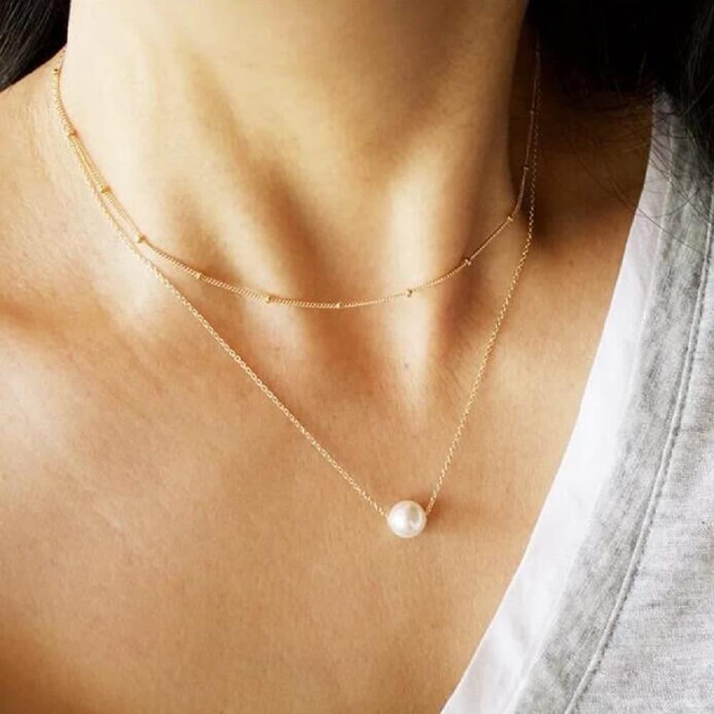 Collar de perlas de agua dulce de doble capa, cadena de clavícula, cuentas de arroz, diseño retro de lujo ligero, sensación exquisita