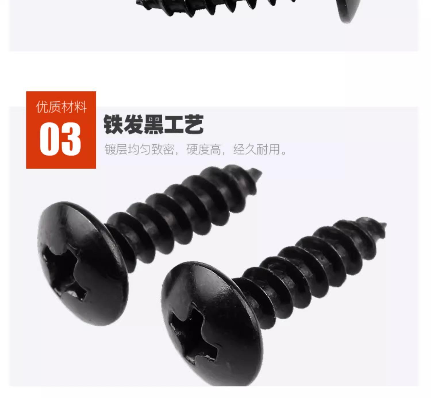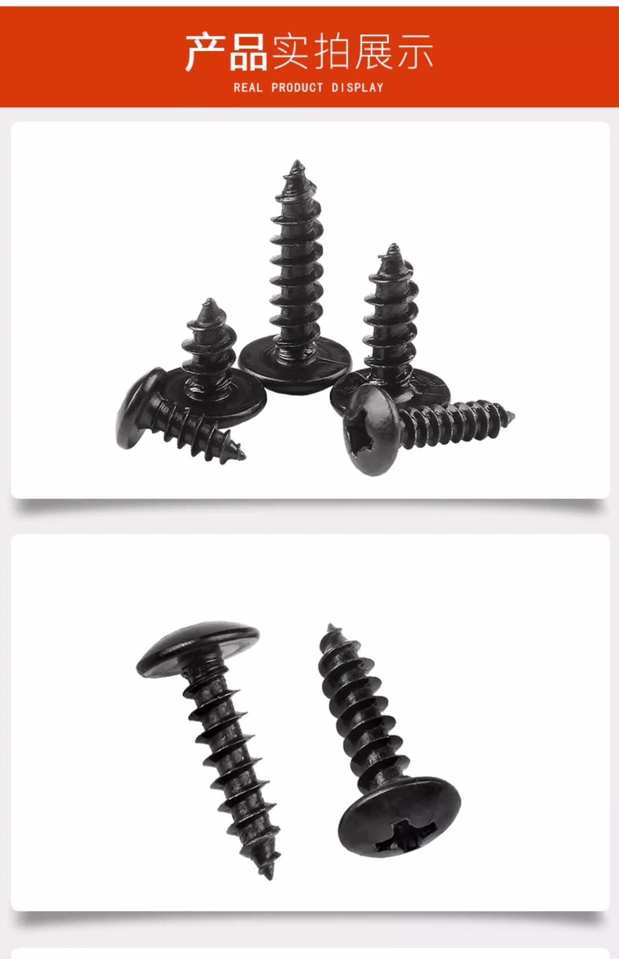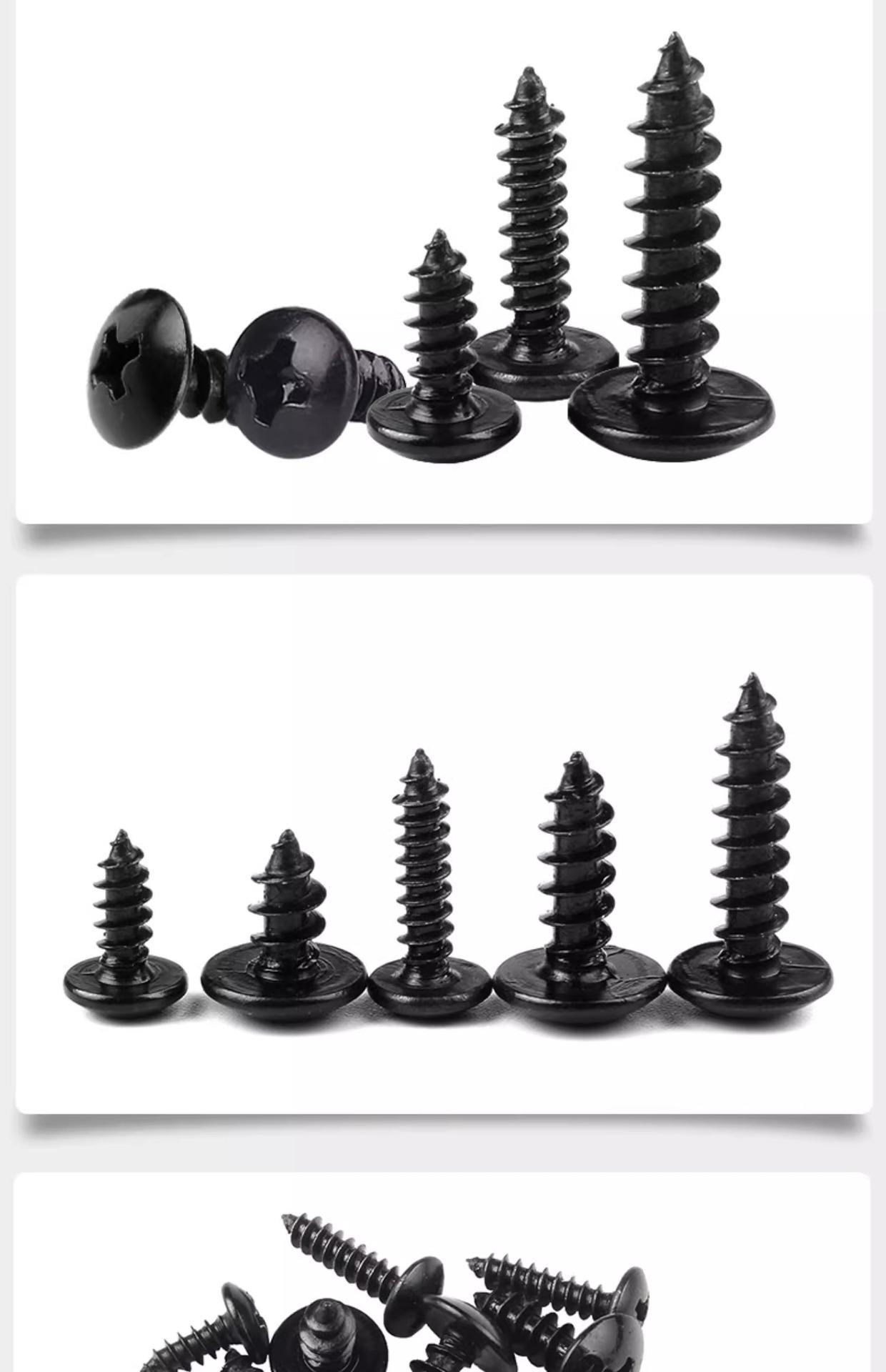 Tornillo autorroscante de cabeza plana grande, negro, cabeza redonda, cruz, cabeza de paraguas grande, tornillo para madera, cabeza de hongo, M3M4M5M6