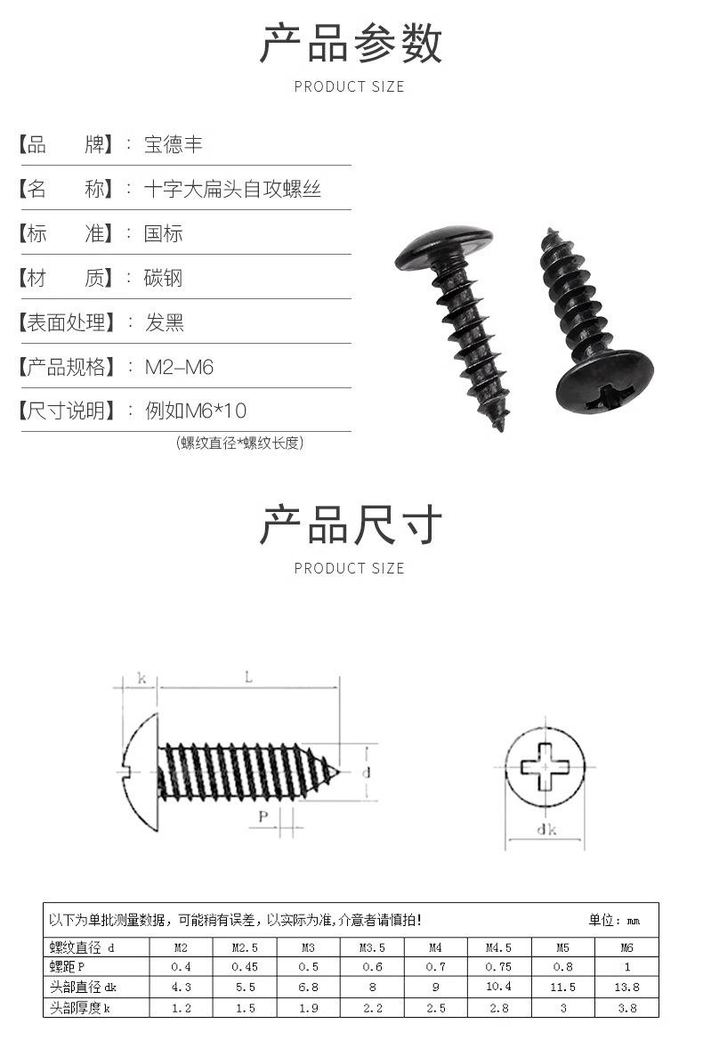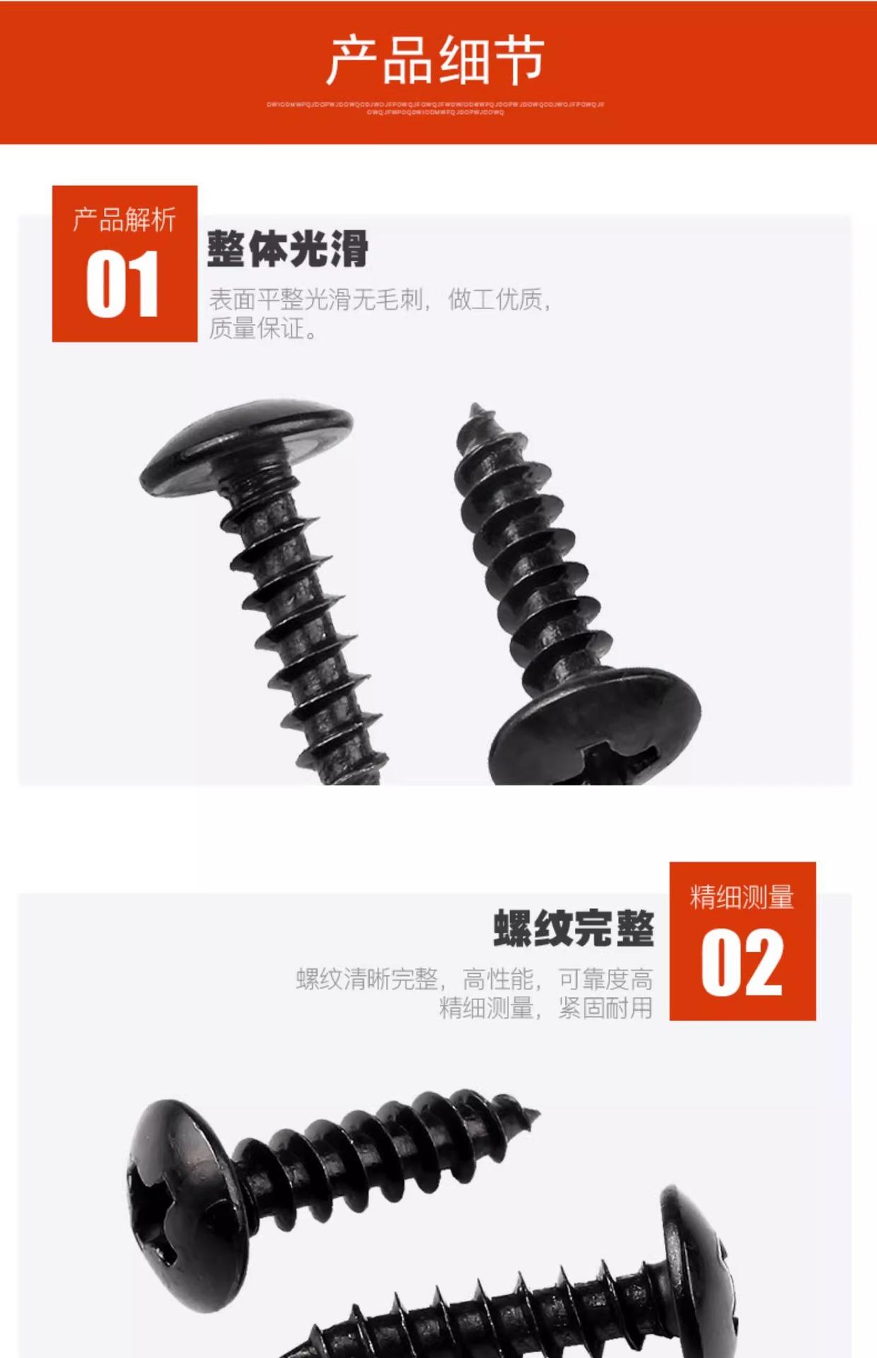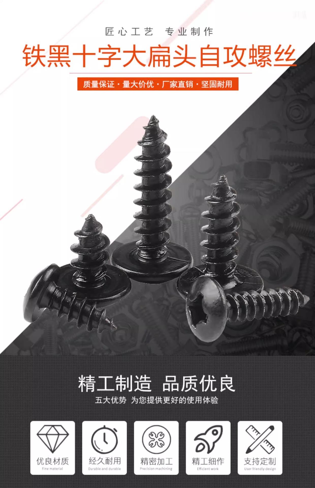 Tornillo autorroscante de cabeza plana grande, negro, cabeza redonda, cruz, cabeza de paraguas grande, tornillo para madera, cabeza de hongo, M3M4M5M6