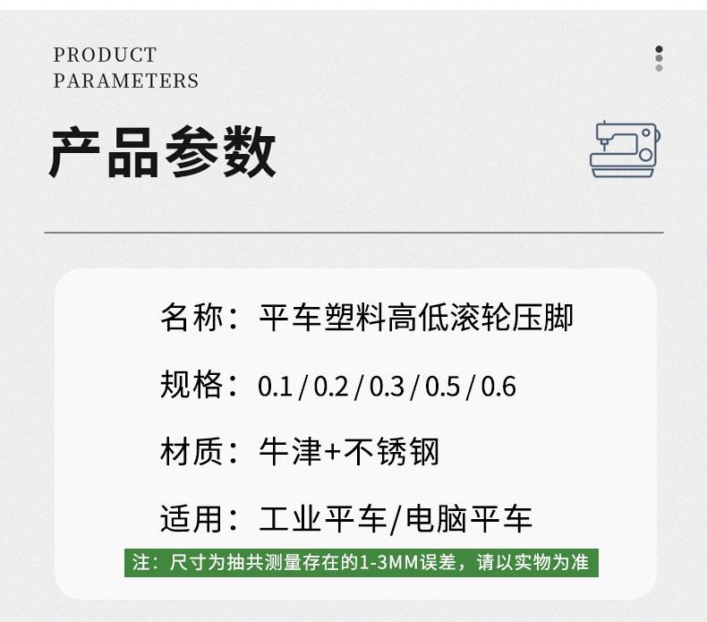 Prensatelas de rodillo alto y bajo de plástico para máquina plana 0.6 prensatelas de línea abierta con tope máquina de coser industrial con ruedas pie de presión alto y bajo