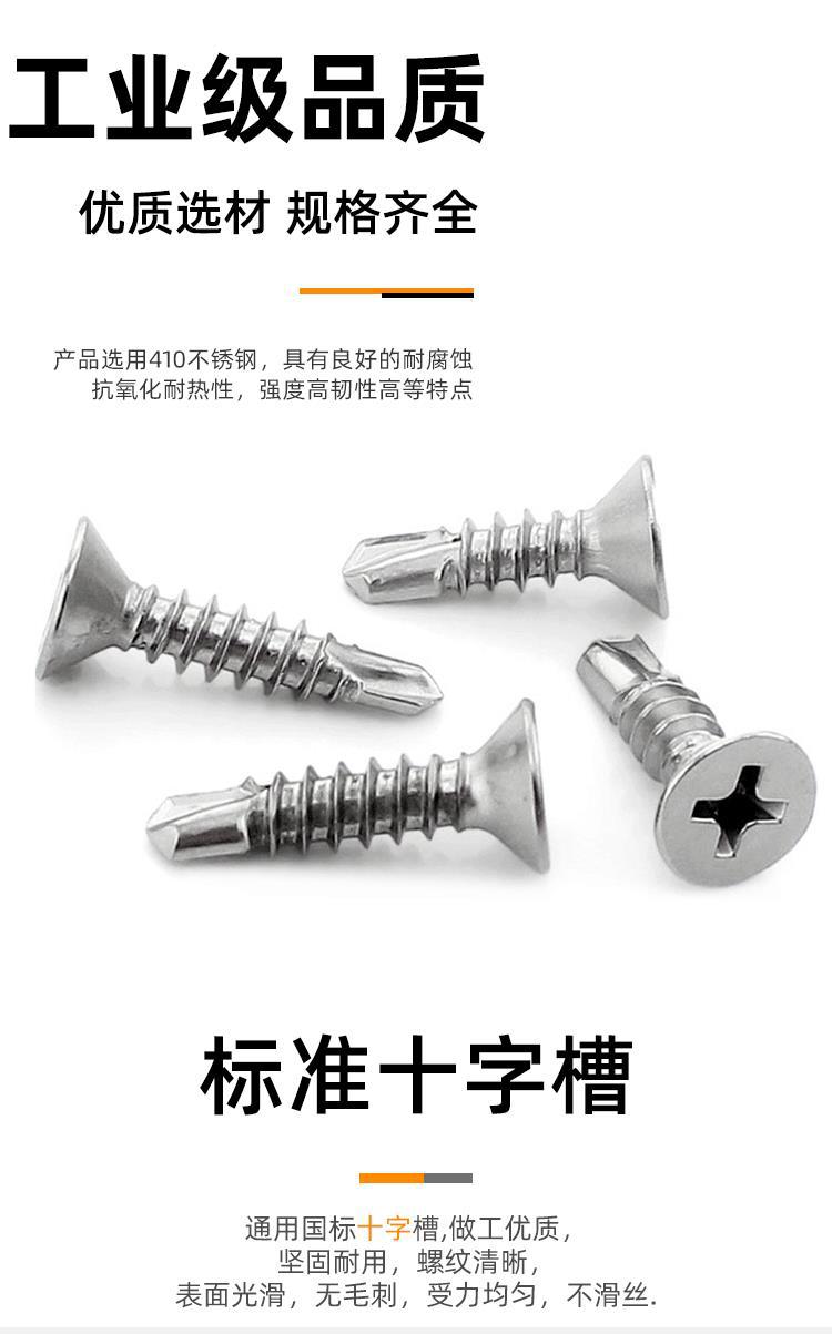 Tornillos Autorroscantes de Acero Inoxidable 410 Personalizados de Cabeza Plana Cruzada con Cola de Taladro, Cabeza Avellanada, Cola de Milano, Alambre, Tornillos Autorroscantes, Clavos de Cola de Milano