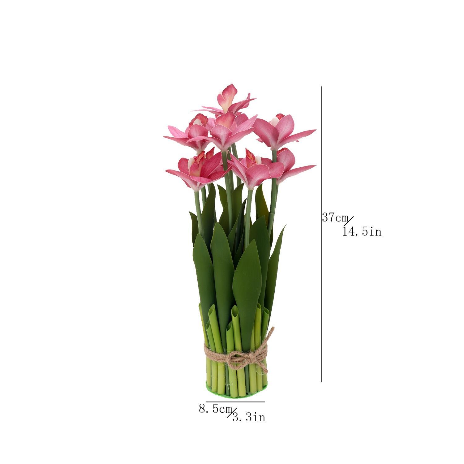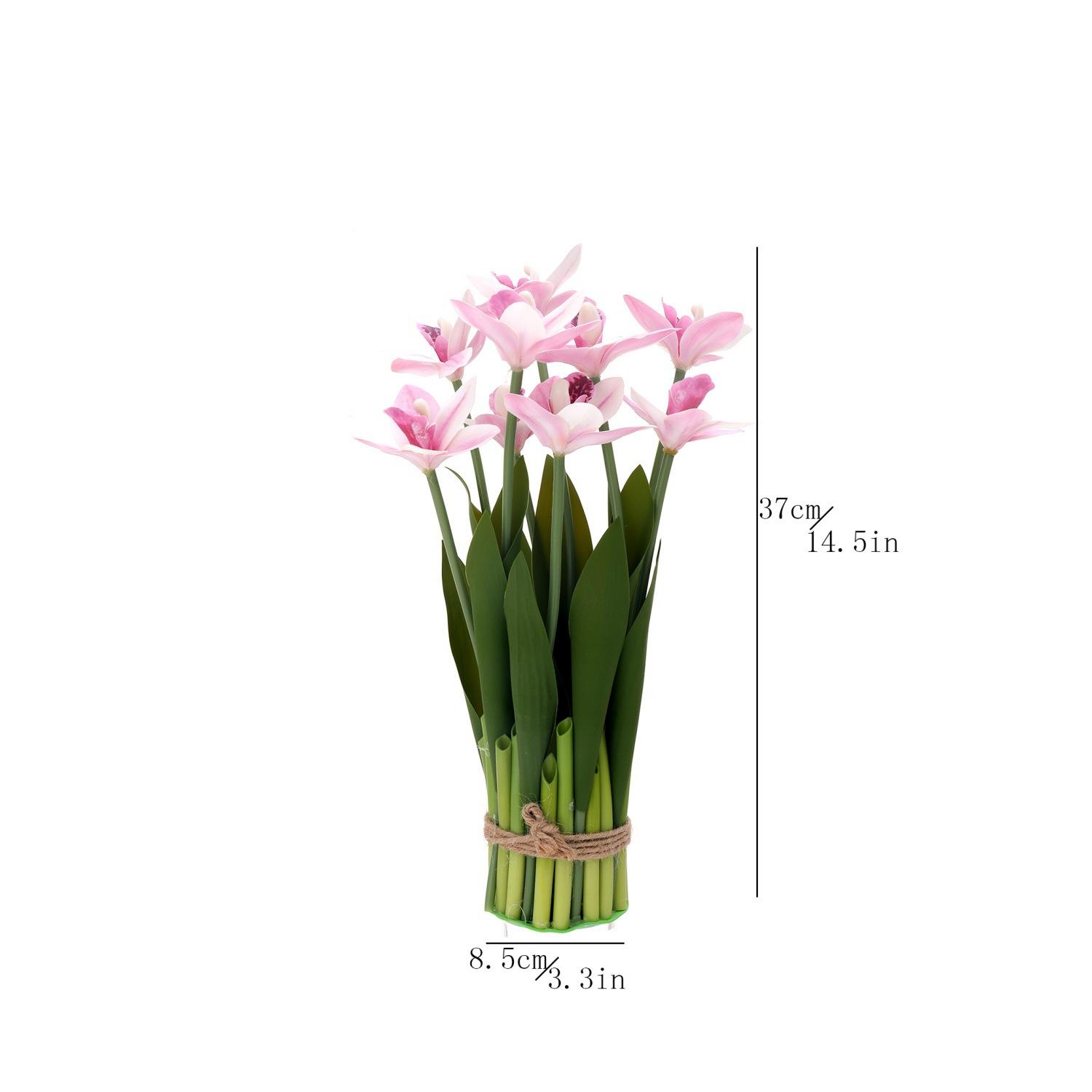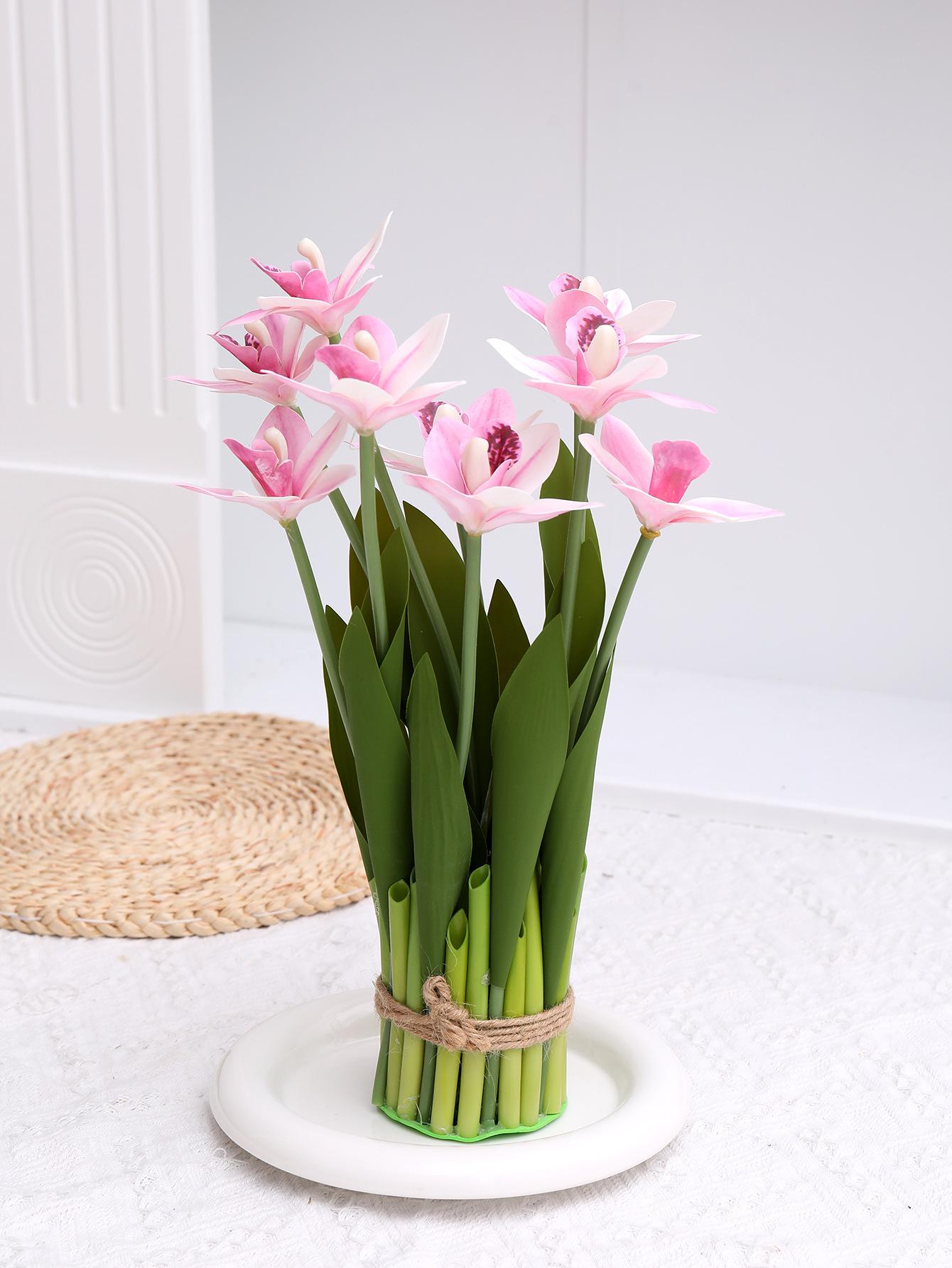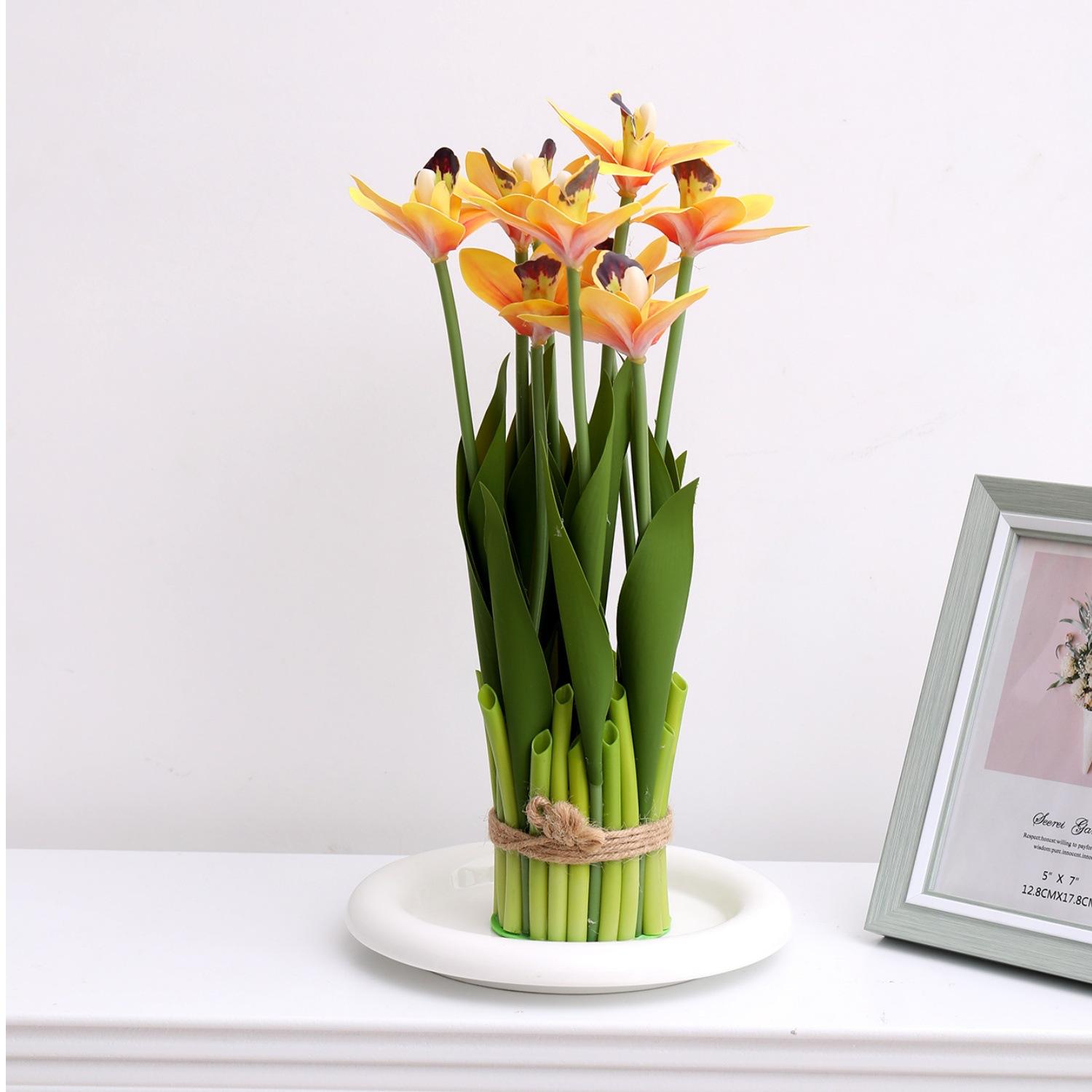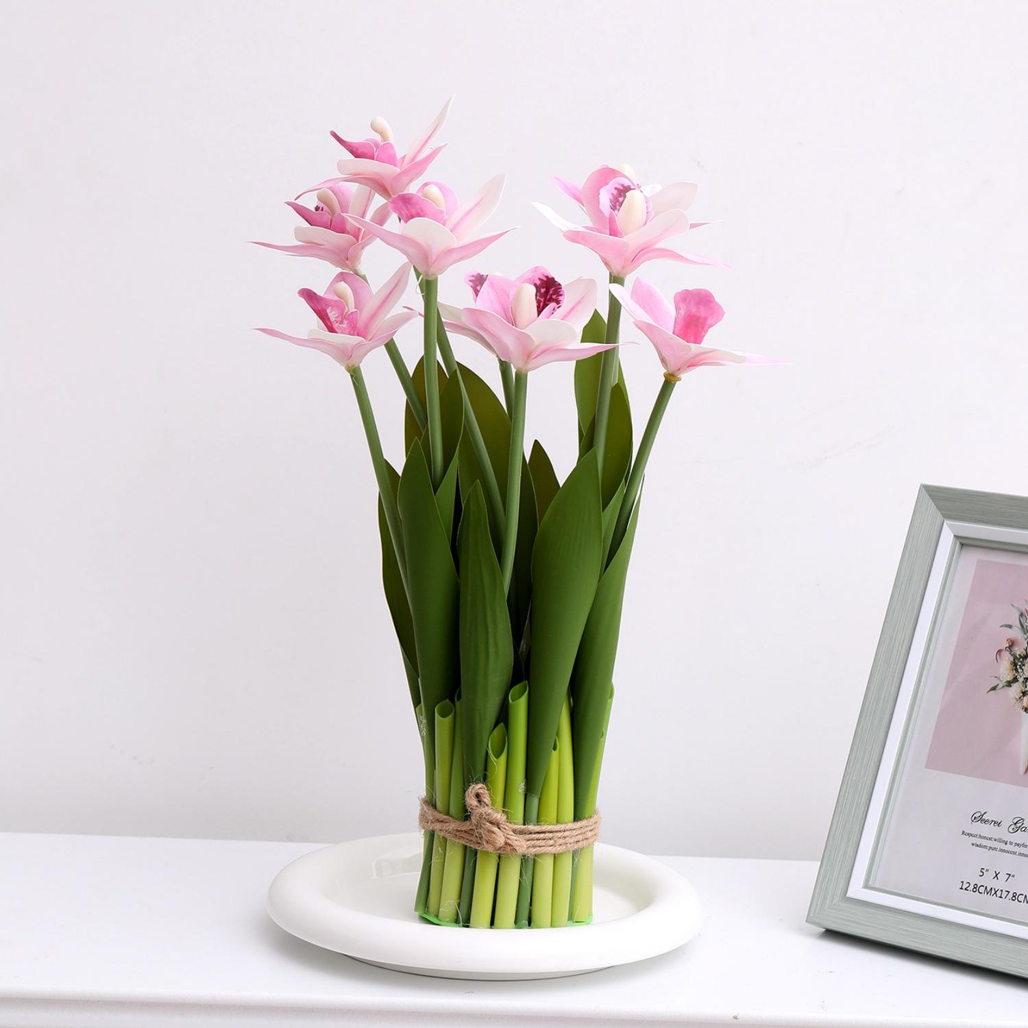Flores artificiales con hojas de cymbidium, película 3D, orquídea, exhibición de sala de estar, arreglo floral, decoración del hogar, flores falsas