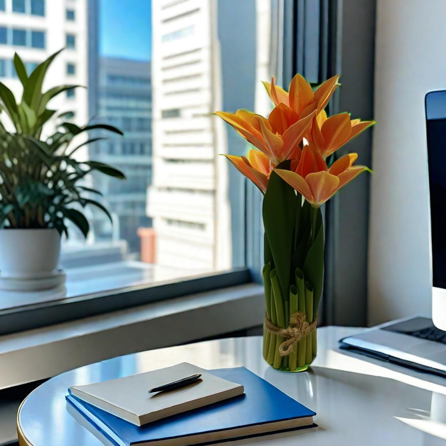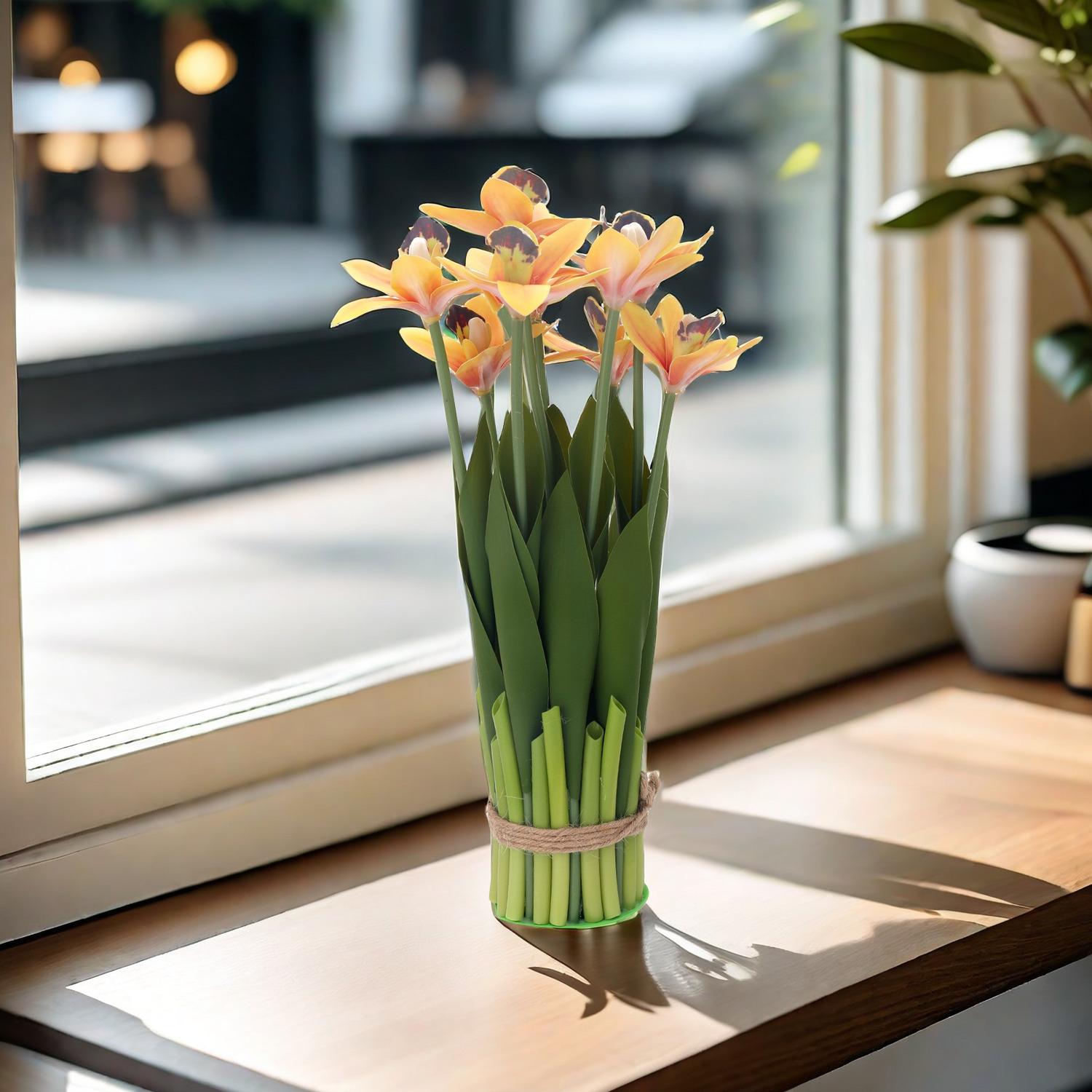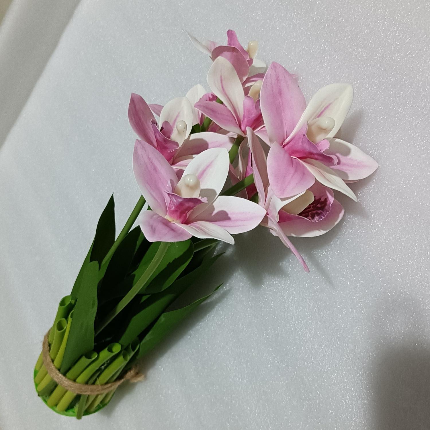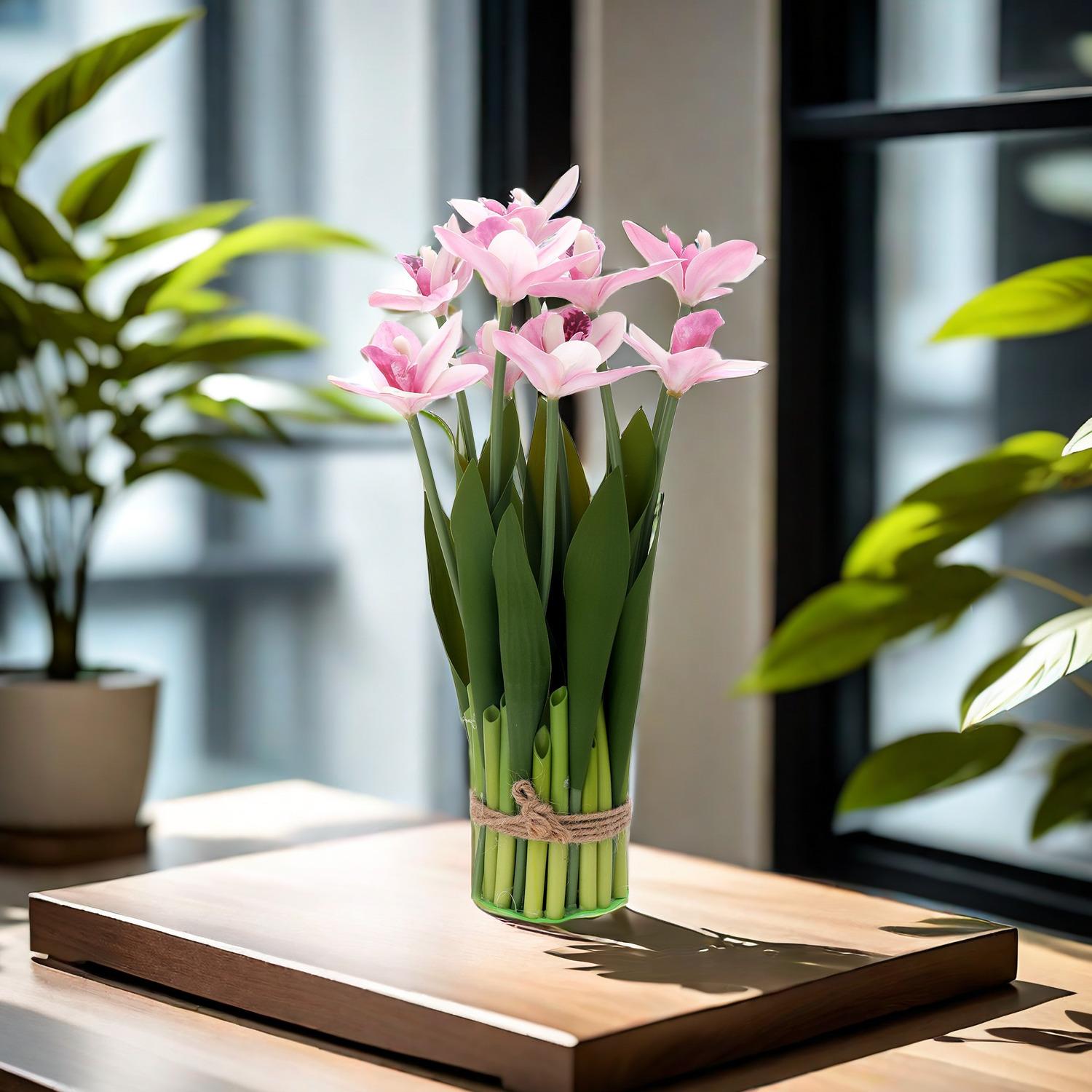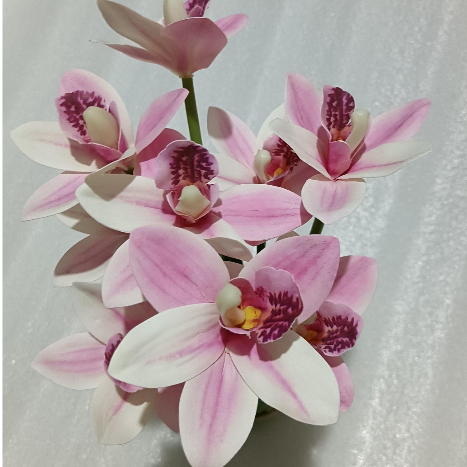 Flores artificiales con hojas de cymbidium, película 3D, orquídea, exhibición de sala de estar, arreglo floral, decoración del hogar, flores falsas