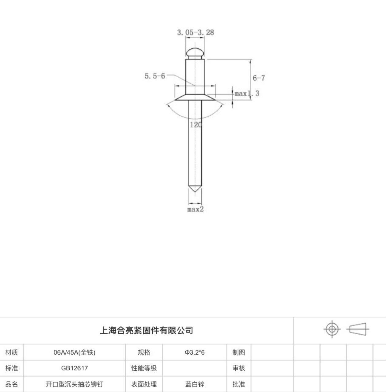 Gb12617 Remaches Galvanizados Remaches Ciegos de Hierro con Cabeza Avellanada Tipo Abierto