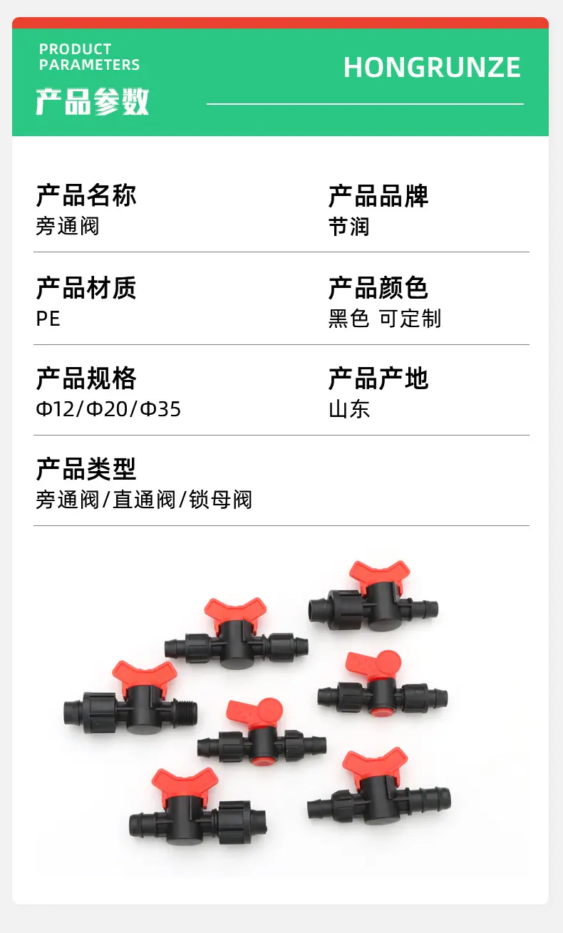 Válvula de derivación con contratuerca de manguera PE, válvula de derivación, junta de tres vías, válvula de riego por goteo, ahorro de agua agrícola, válvula de paso recto simple