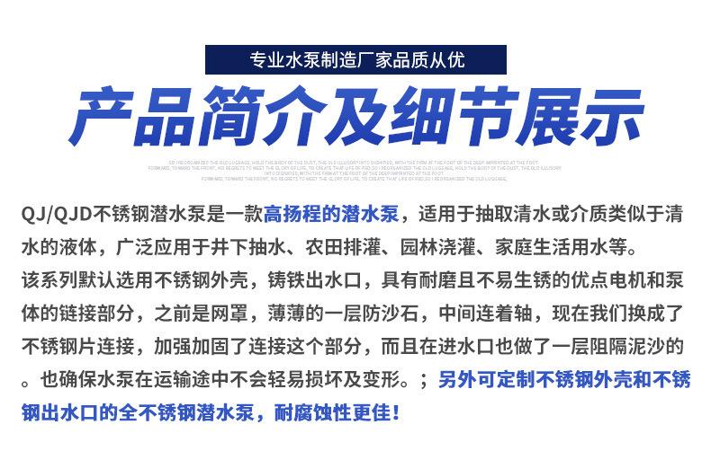 Compra Bomba de Pozo Profundo Qj Bomba Sumergible de Alta Elevación Elevación de Agua Subterránea Suministro de Agua Industrial Gran Caudal Bomba de Agua Eléctrica Multietapa al por mayor en Joom.pro