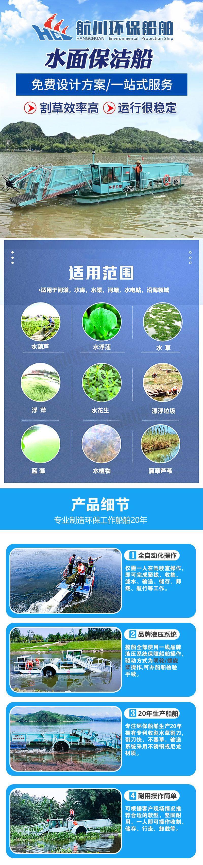 Pequeño embalse barco cortacésped estanque agua hierba salvamento cosecha barco río estanque planta acuática limpieza barco duradero