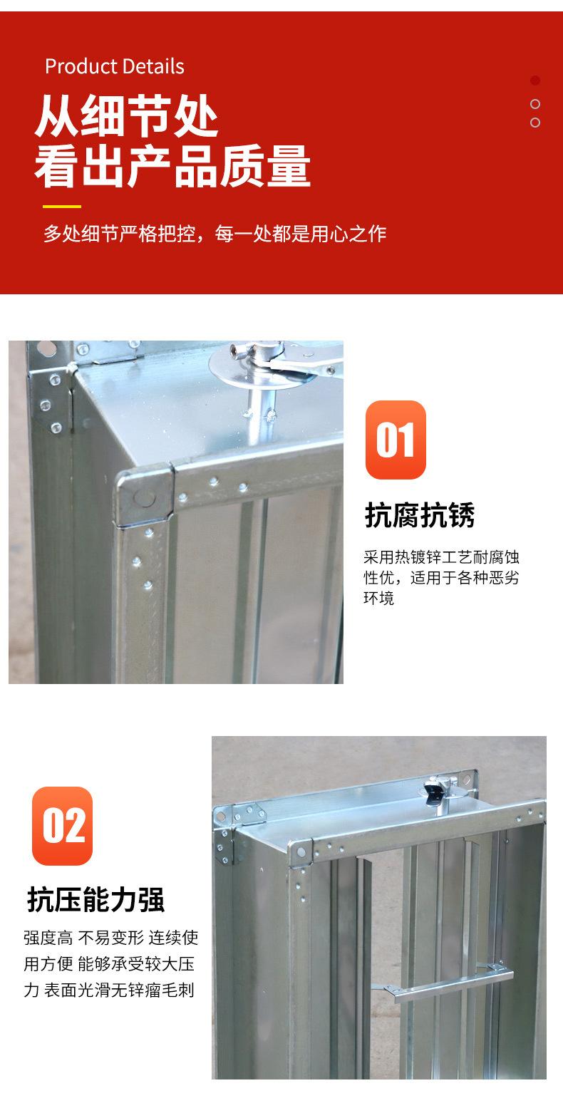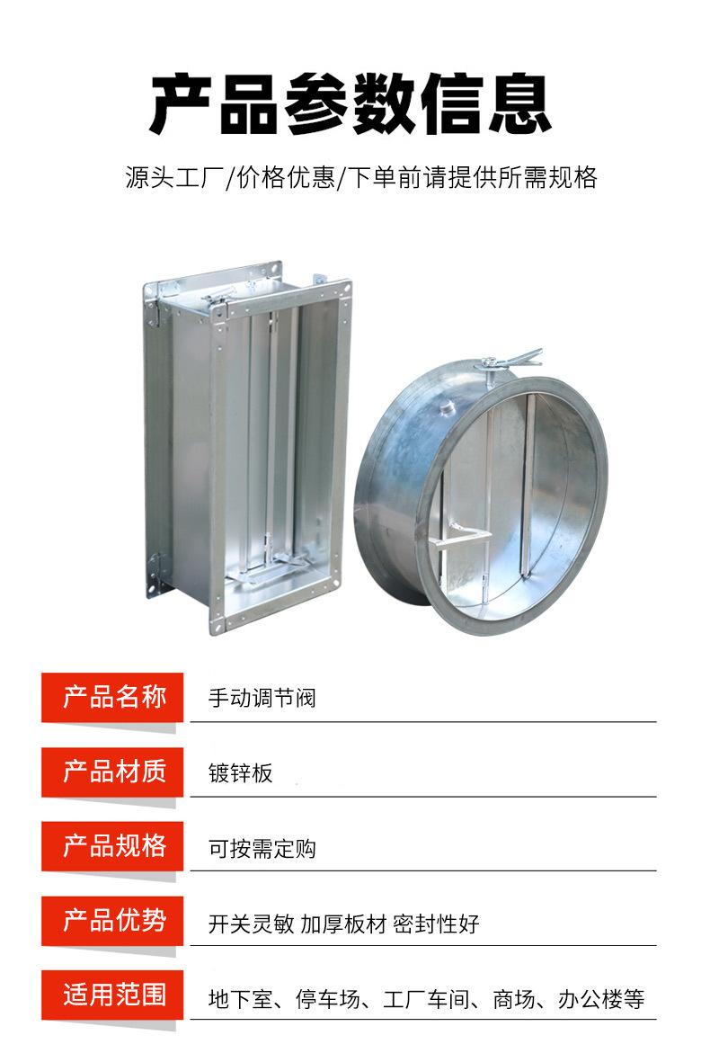 Válvula de control de volumen de aire manual de acero inoxidable, válvula de control de ventilación redonda galvanizada, válvula de retención cuadrada de acero inoxidable 304