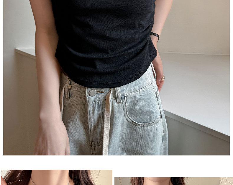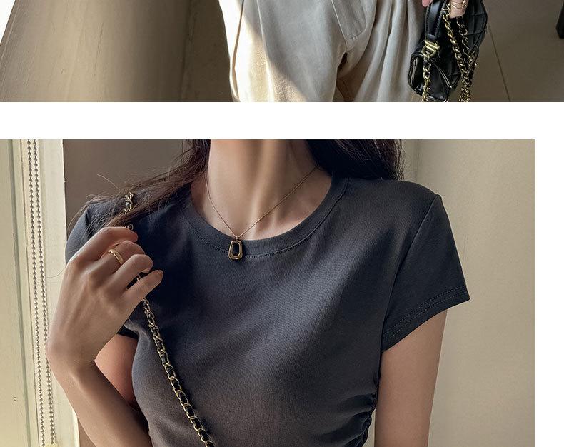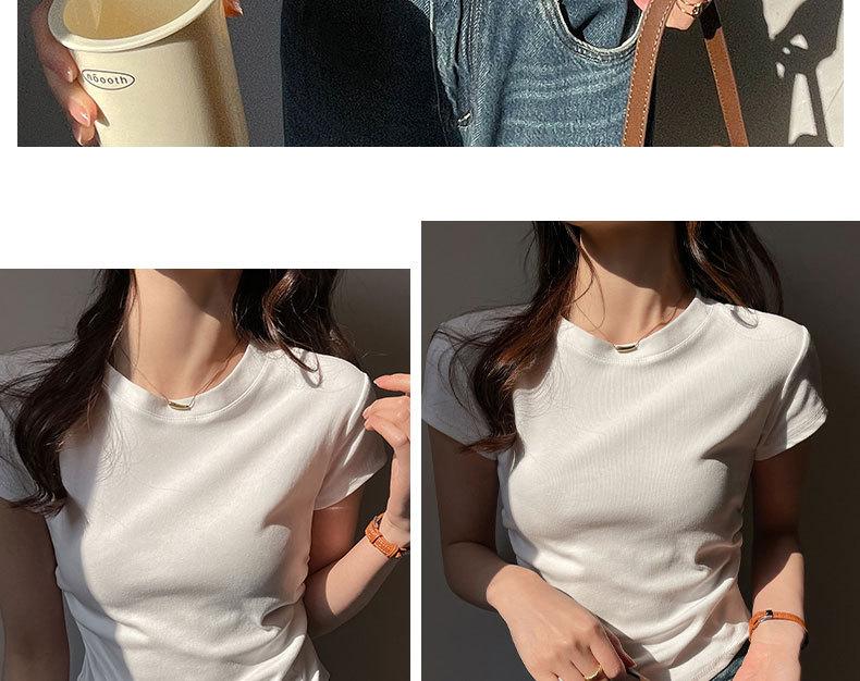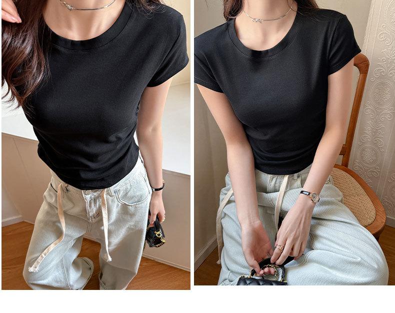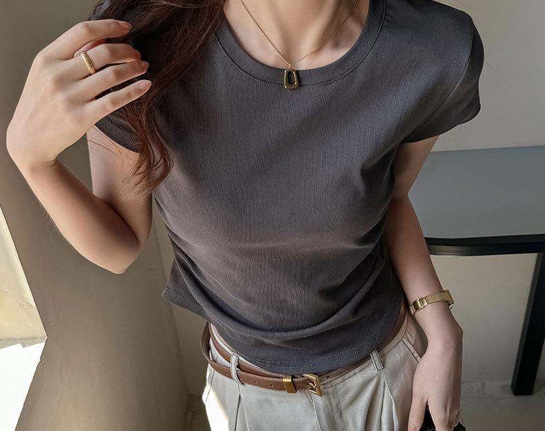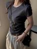Camiseta de manga corta con hombros descubiertos estilo americano para mujer, nueva camiseta de verano de color liso plisada, adelgazante, estilo Spice Girls, combina con todo.