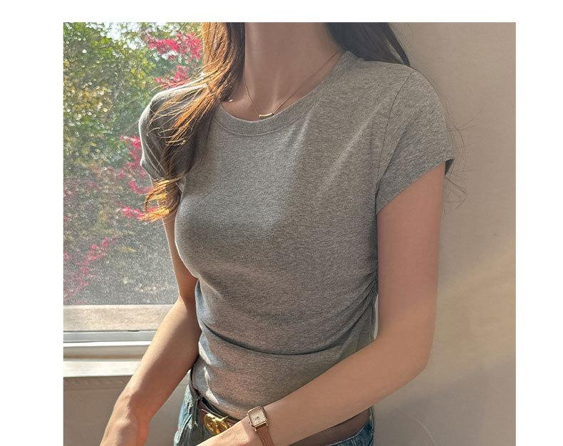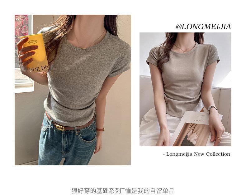 Compra Camiseta de manga corta con hombros descubiertos estilo americano para mujer, nueva camiseta de verano de color liso plisada, adelgazante, estilo Spice Girls, combina con todo. al por mayor en Joom.pro