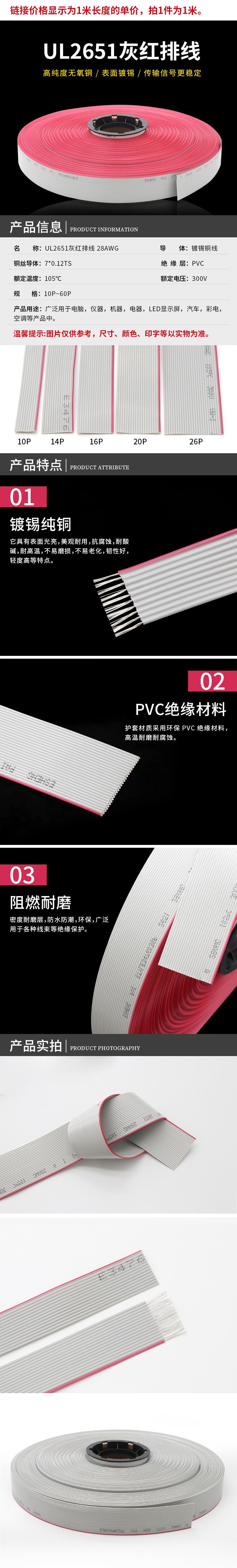 Cable UL2651 gris y rojo, cable de 28 AWG, cable de conexión de terminales de cobre estañado de 6/10/14/20/26/30P