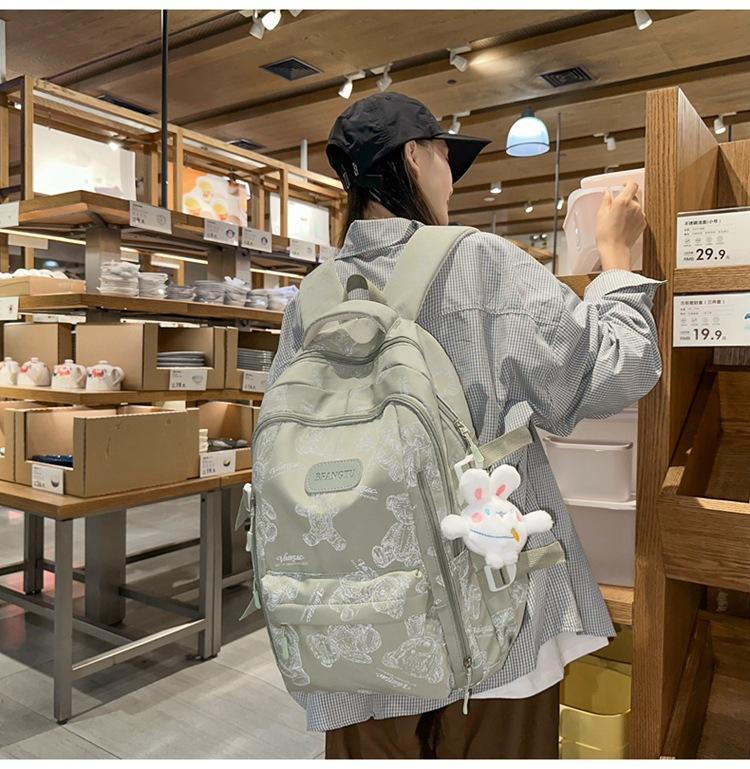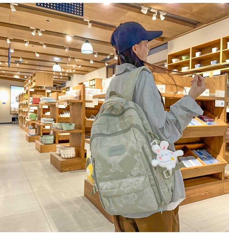 Mochila escolar informal sencilla de estilo coreano para mujer, mochila para estudiantes de secundaria y universitarios, mochila estampada de gran capacidad y con múltiples combinaciones.