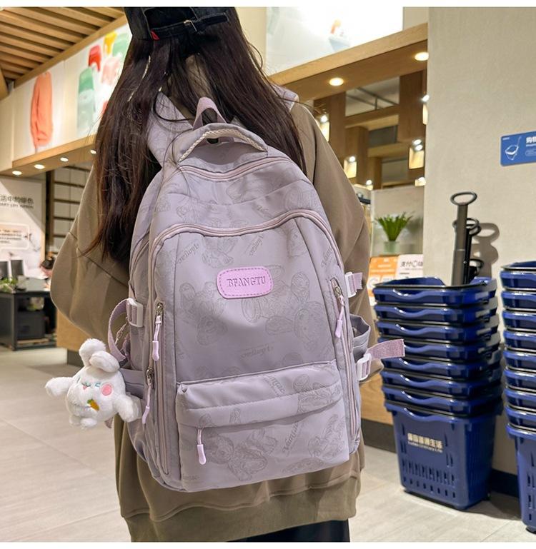 Compra Mochila escolar informal sencilla de estilo coreano para mujer, mochila para estudiantes de secundaria y universitarios, mochila estampada de gran capacidad y con múltiples combinaciones. al por mayor en Joom.pro