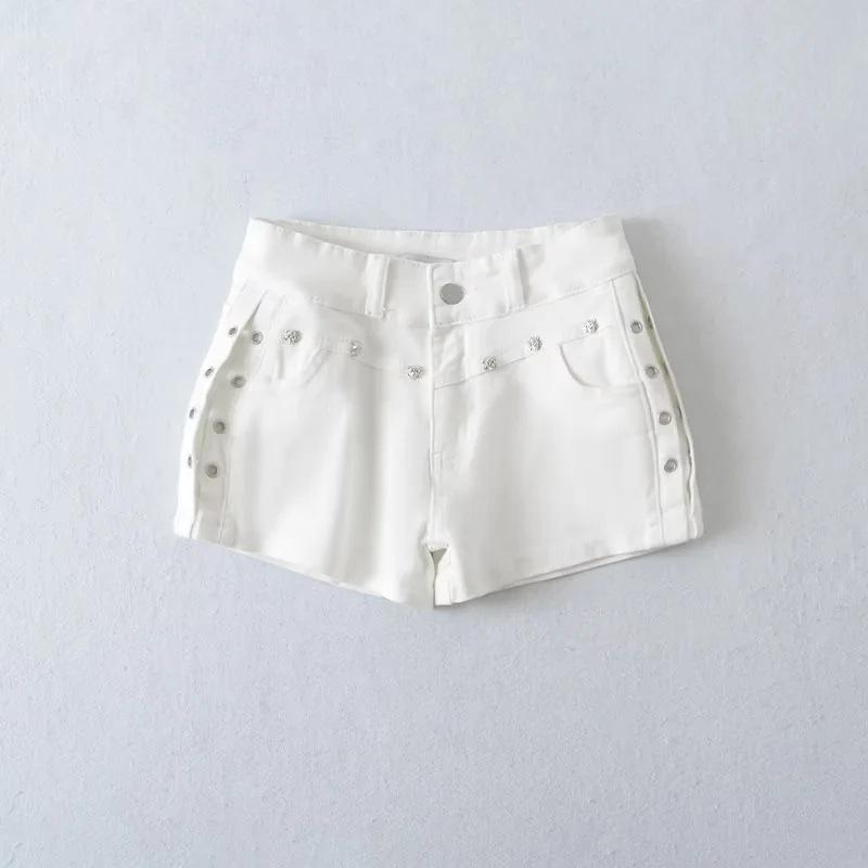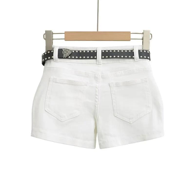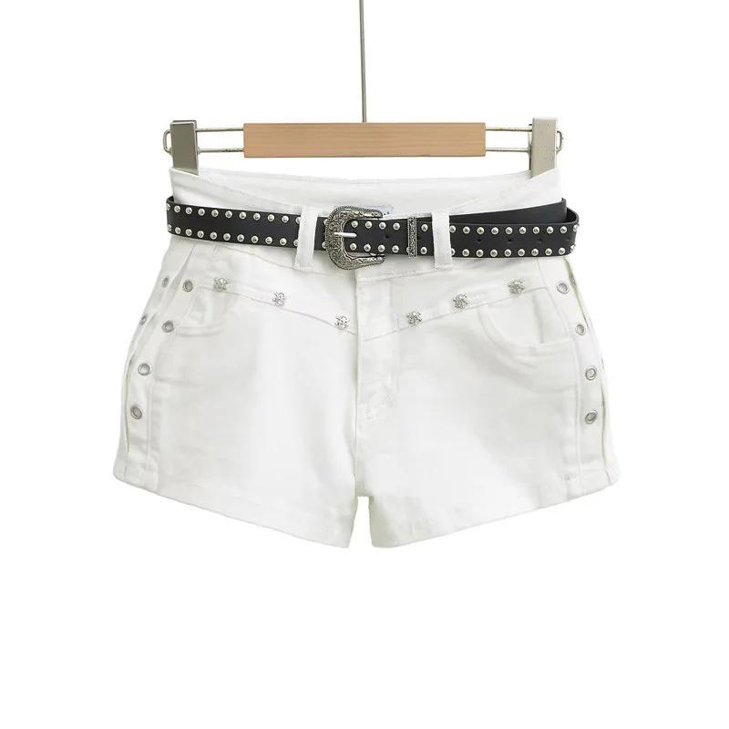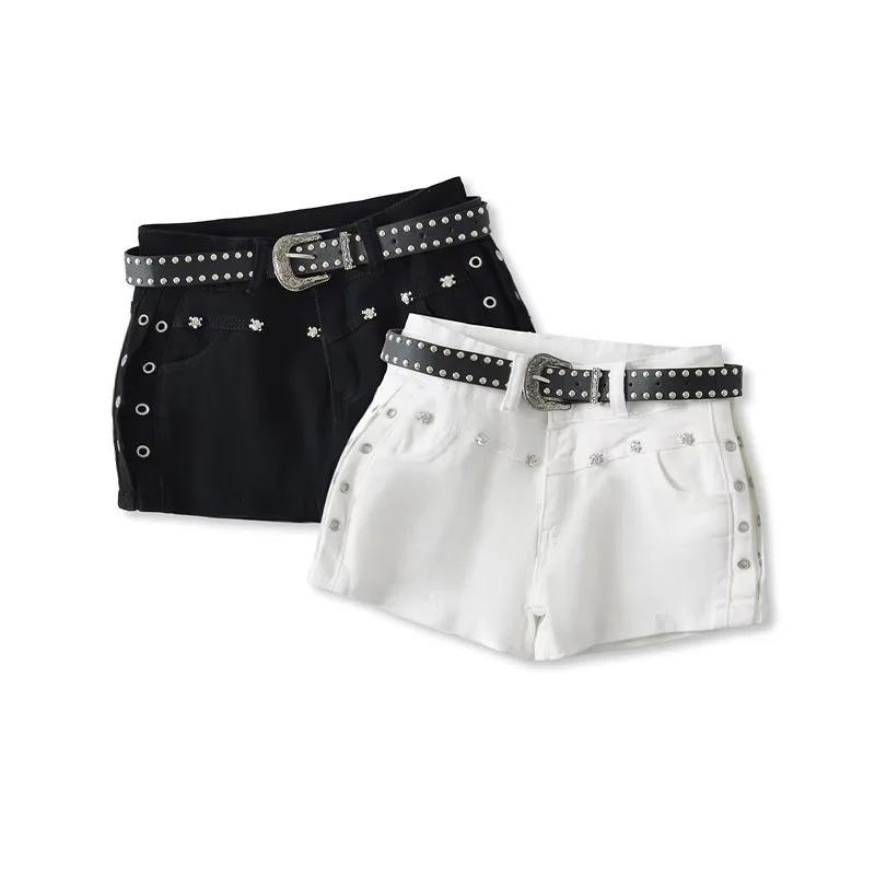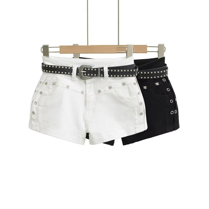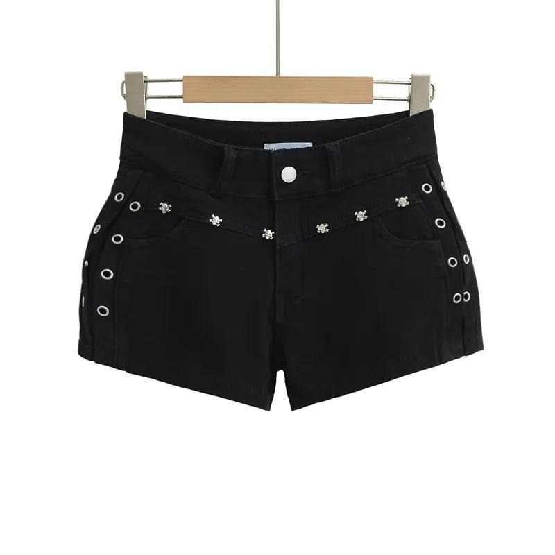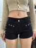 Shorts Casuales Black Rivet para Mujer Verano Estilo Americano Pequeño Chica Hot Cintura Alta Slim Rectos Pantalones Ajustados Pantalones Cortos Hot