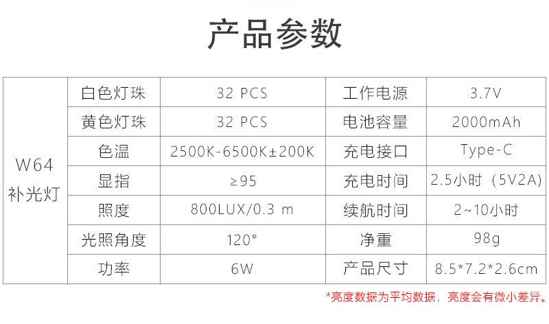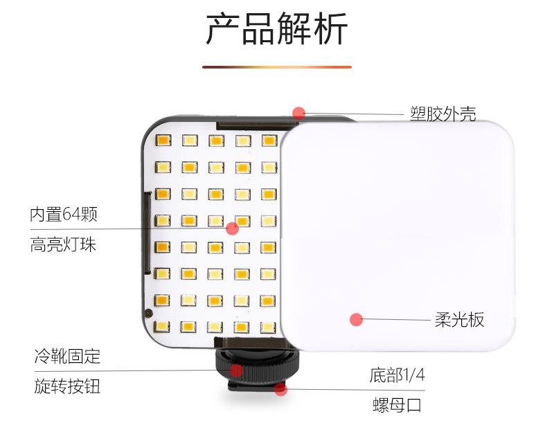 W64 Luz para Fotografía de Cámara de Teléfono Móvil Pequeña Mini Luz de Relleno Temperatura de Color Ajustable Carga Video Douyin Luz para Transmisión en Vivo