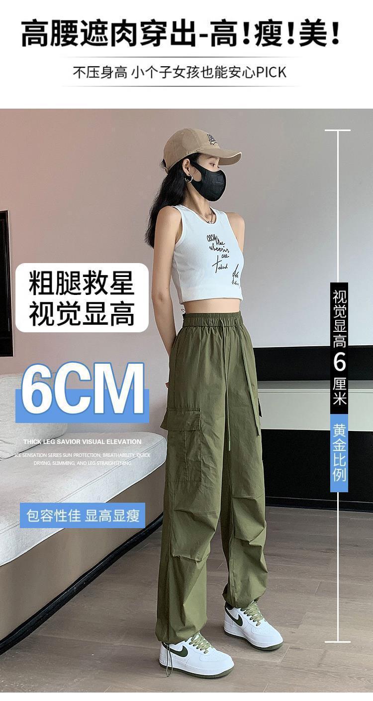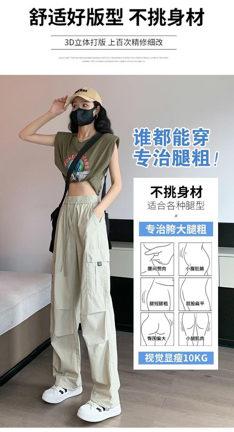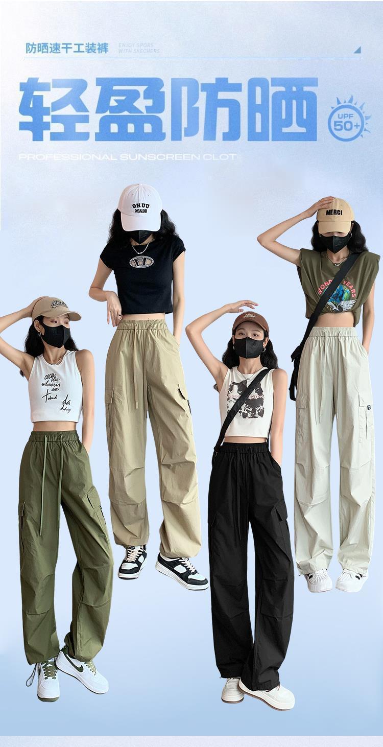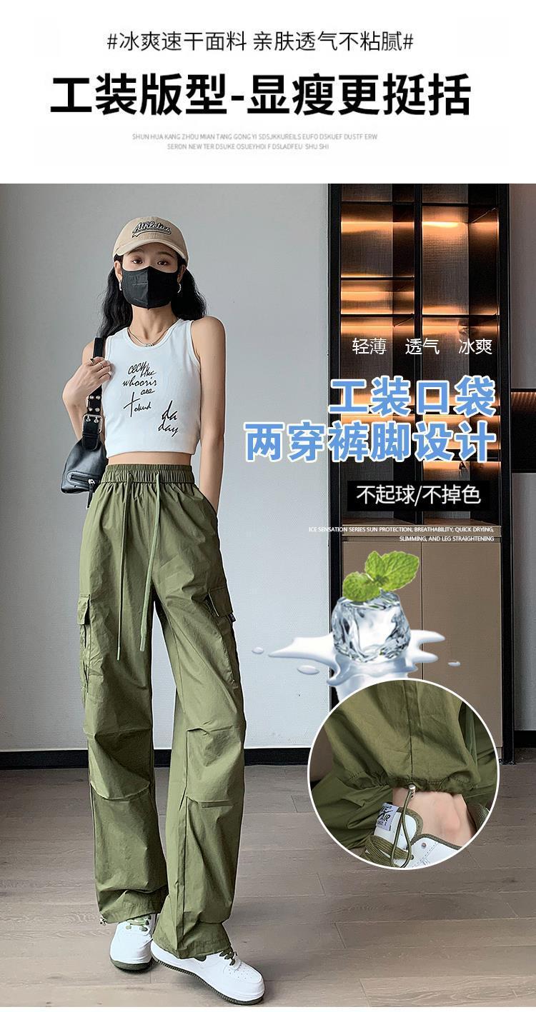 Pantalones Casuales de Trabajo Estilo Americano para Mujer Verano Protección Solar Calle Combinación con Todo Rectos Sueltos Pierna Ancha Ins Drapeados Pies