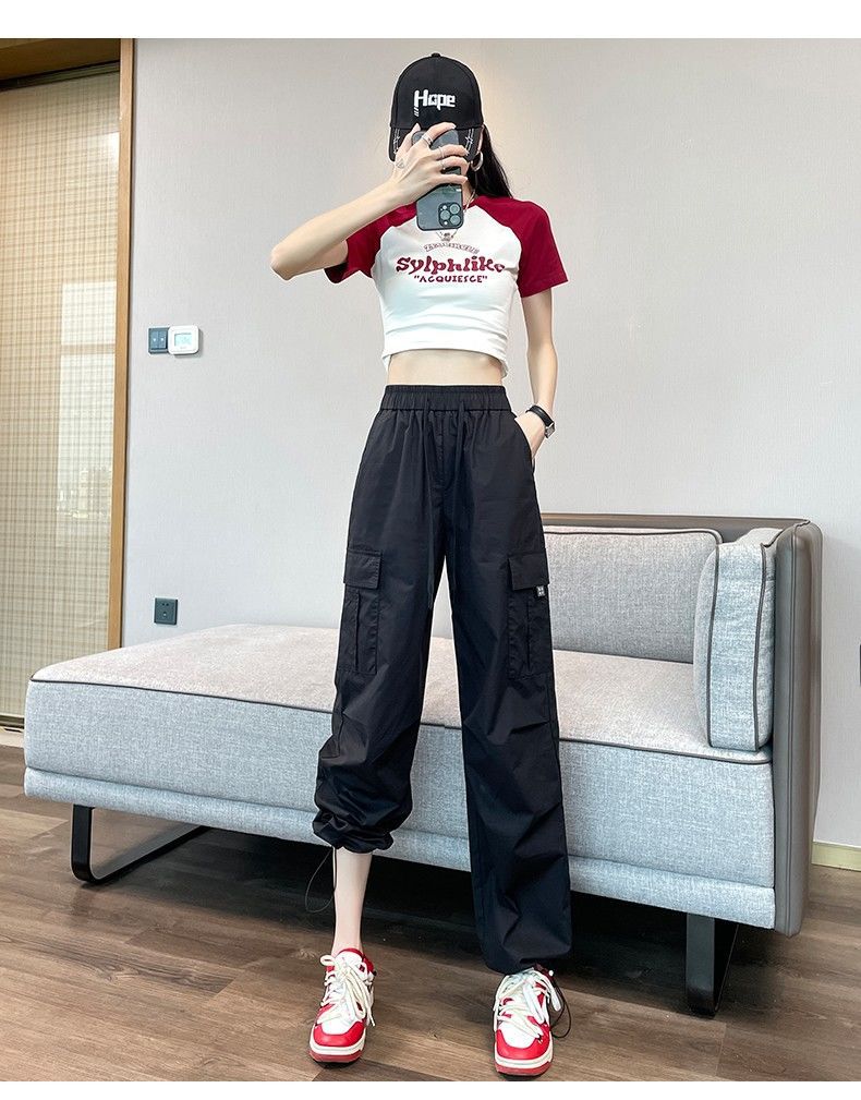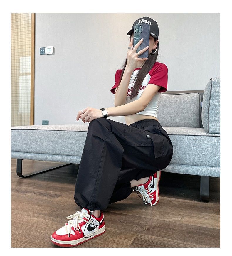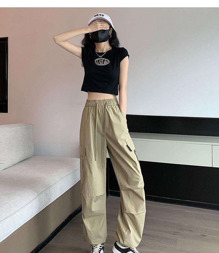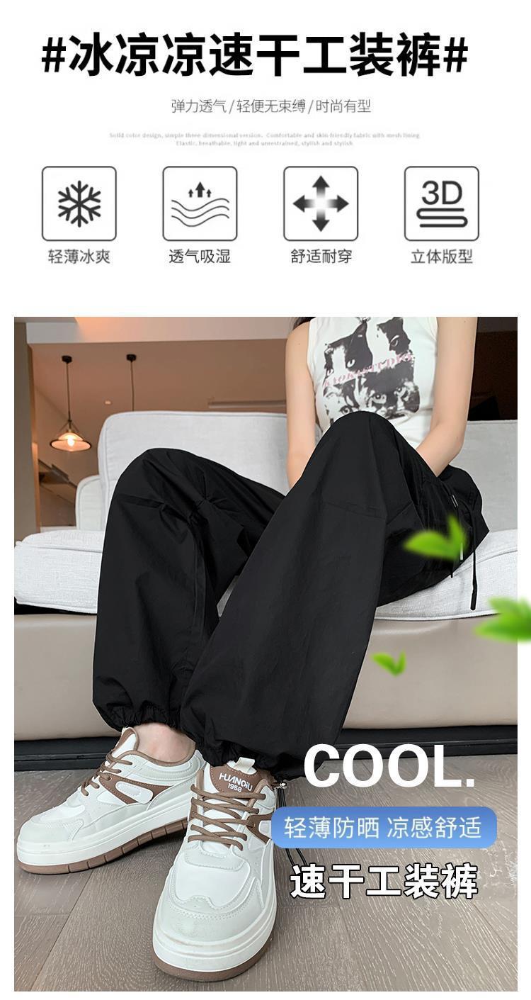 Pantalones Casuales de Trabajo Estilo Americano para Mujer Verano Protección Solar Calle Combinación con Todo Rectos Sueltos Pierna Ancha Ins Drapeados Pies
