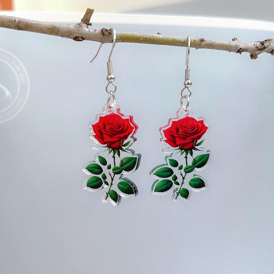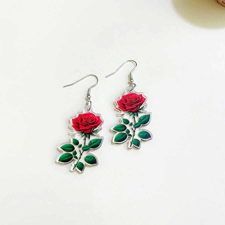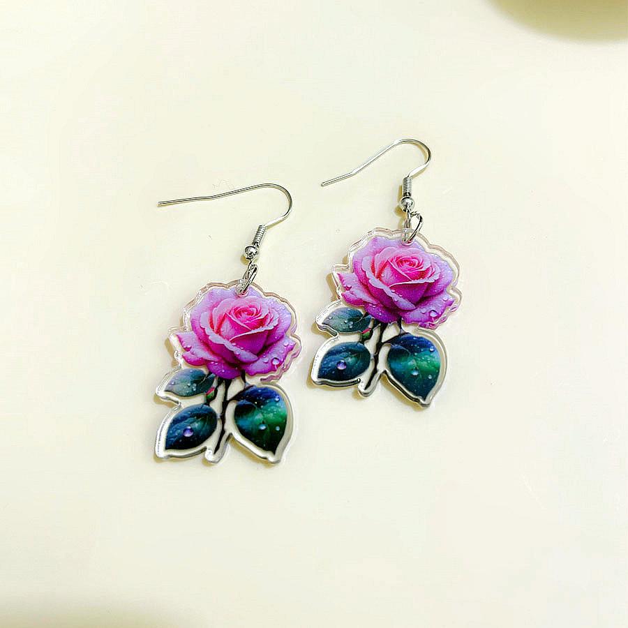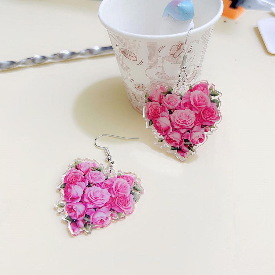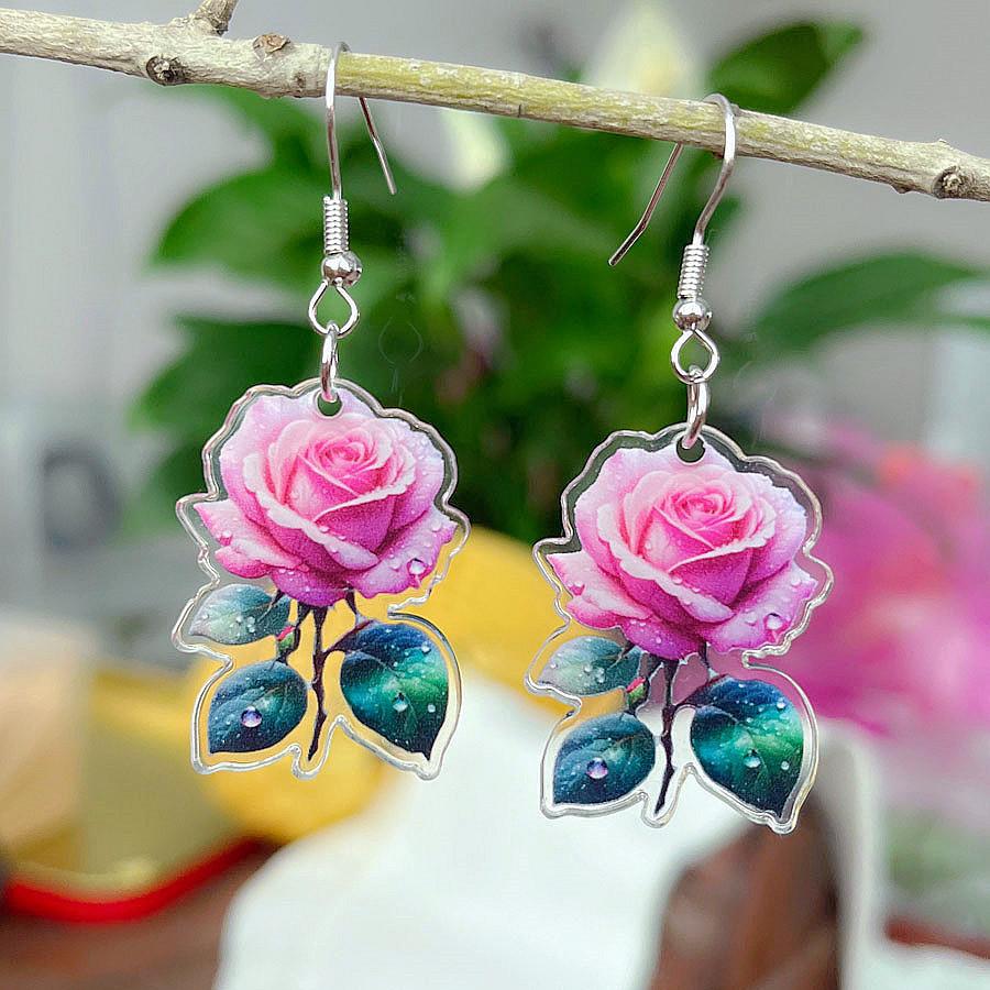 Pendientes de rosa acrílica tridimensionales de doble cara de moda transfronteriza, pendientes de flores versátiles y frescos de verano, joyería para las orejas