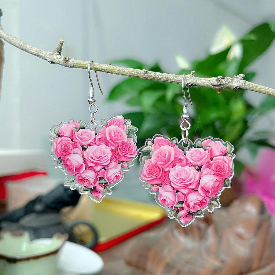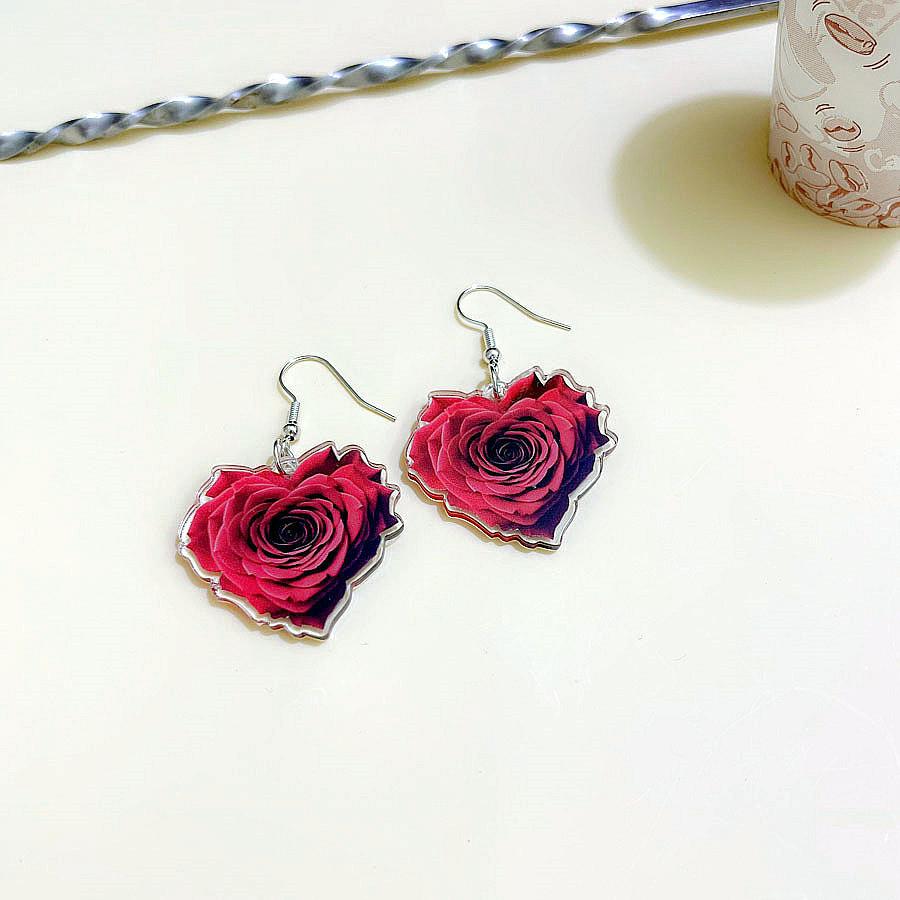 Pink heart rose earrings, Red heart-shaped rose earrings, Pink rose earrings, Red rose earrings, White flower ...