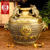Huang Jiman Tang Cuenco de Tesoro de Cobre Estilo Antiguo de Cuatro Lados Atrayendo Riqueza Adorno Sapo Dorado Decoración para el Hogar