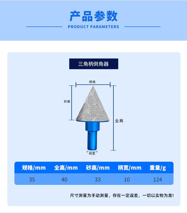 Mango Triangular Diamante Soldado Azulejo Mármol Cerámica Granito Cuarzo Biselado Expansor de Agujeros