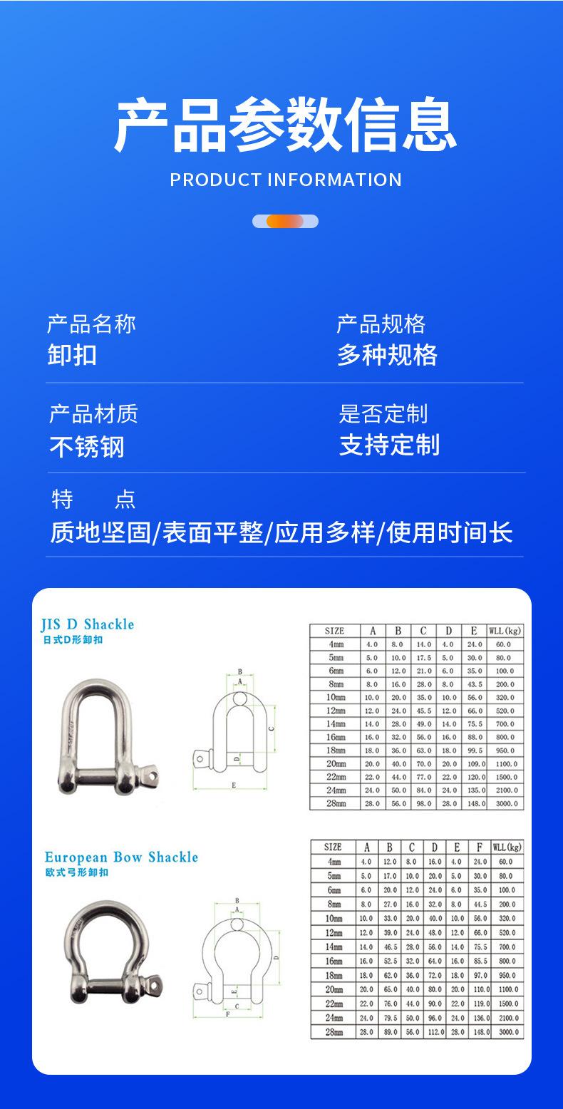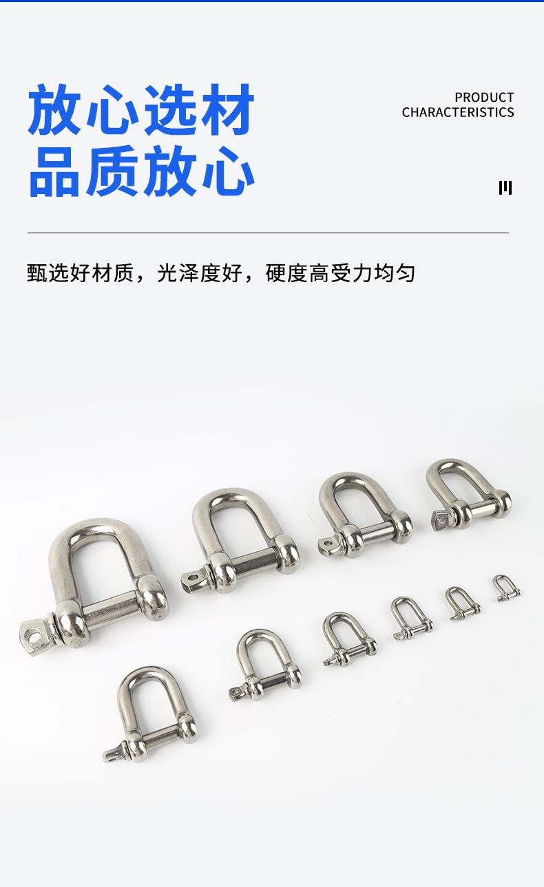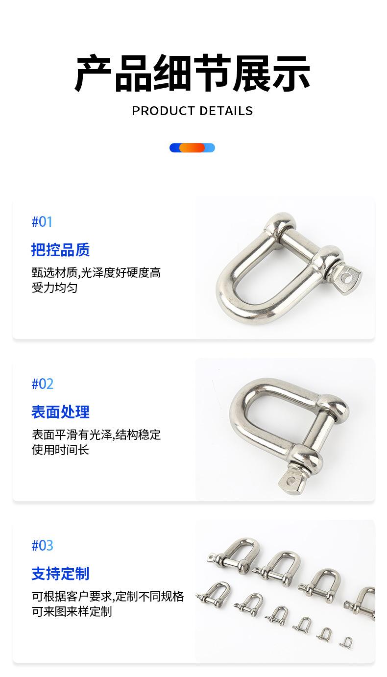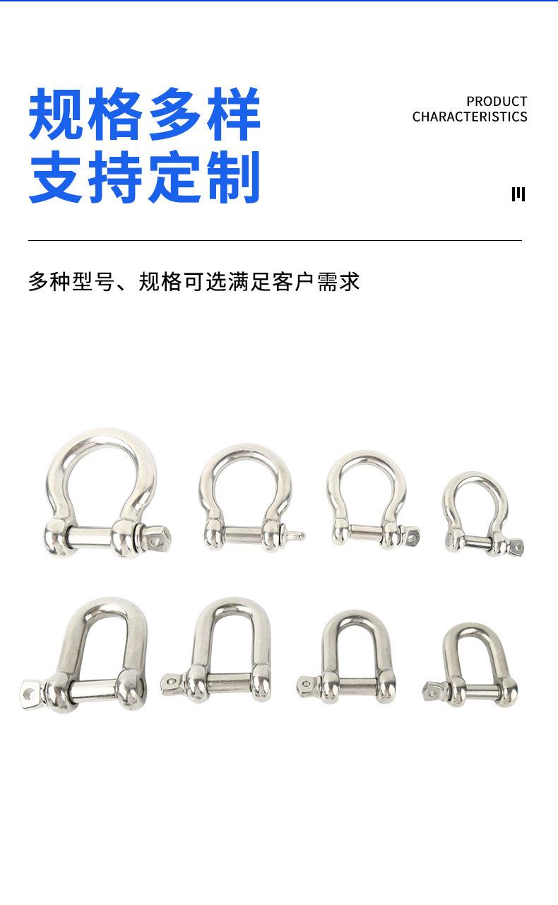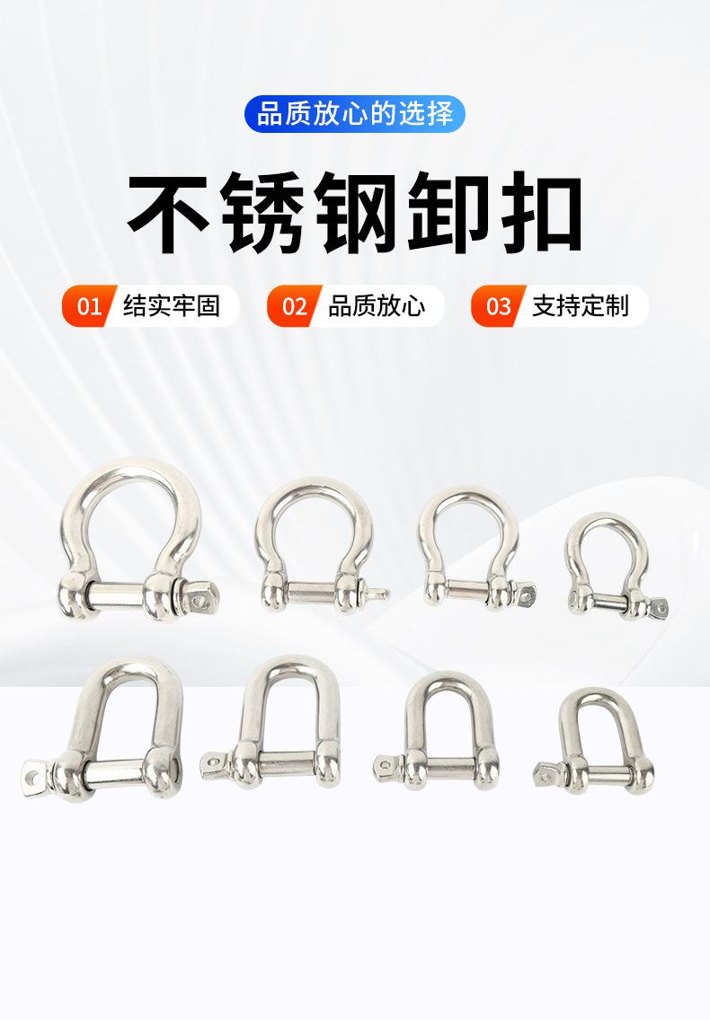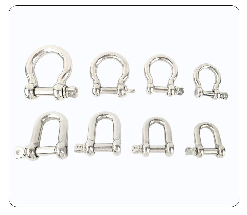 Grillete en forma de D Grillete de arco Venta al por mayor en stock Acero inoxidable 304 Hebilla de acero en forma de U Hebilla de conexión de cadena de aparejo Hebilla de herradura
