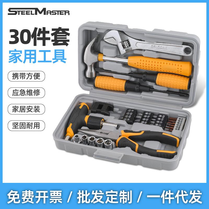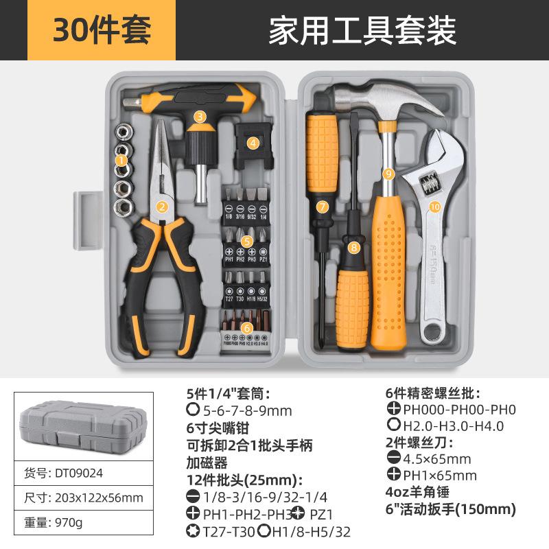 Caja de Herramientas de Ferretería para el Hogar de 30 Piezas de Venta Caliente Alicates Multifuncionales Martillo Destornillador Llave Juego de Herramientas de Reparación