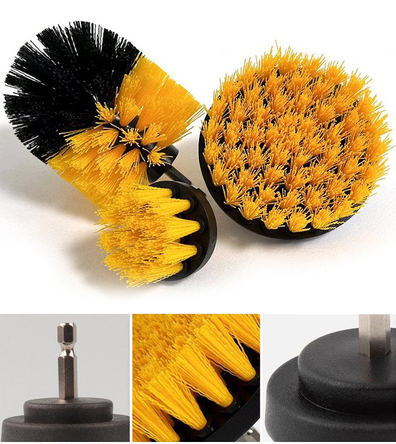 Yellow; 3-piece electric drill brush set (2inch + 3.5inch + 4inch )