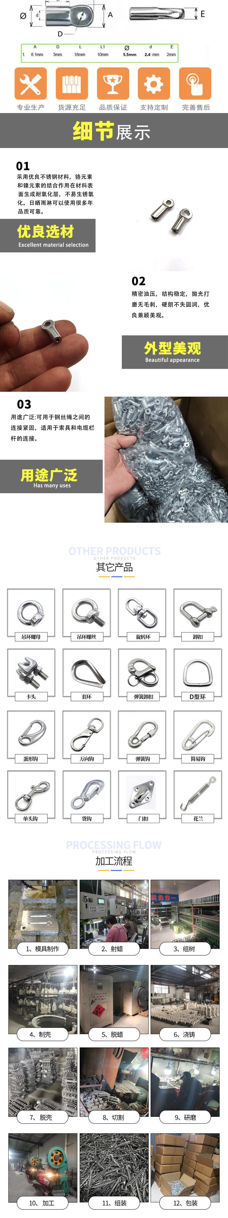 Mini conector de ojo de acero inoxidable transfronterizo en stock, conector pasacables