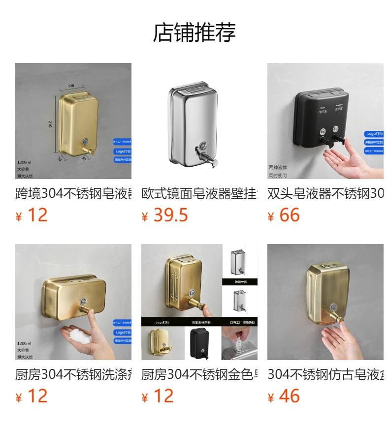 Suministro directo transfronterizo Acero inoxidable 304 Hotel Gel de ducha Jabón de manos Presionar Montado en la pared Dispensador de jabón Botella de loción Venta al por mayor