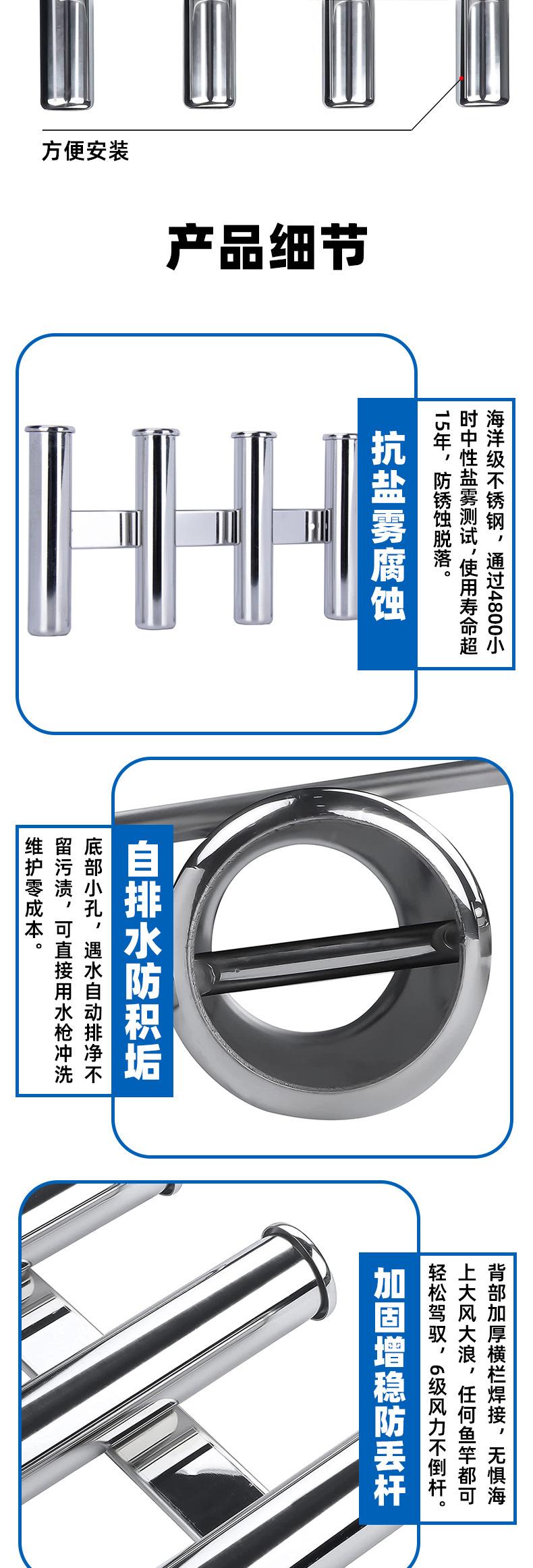 Asiento para Caña de Pescar de la Industria de Barcos de Aventura Acero Inoxidable Cuádruple Anti-viento y Ola Engrosado Herrajes Marinos Accesorios para Yate Asiento para Caña