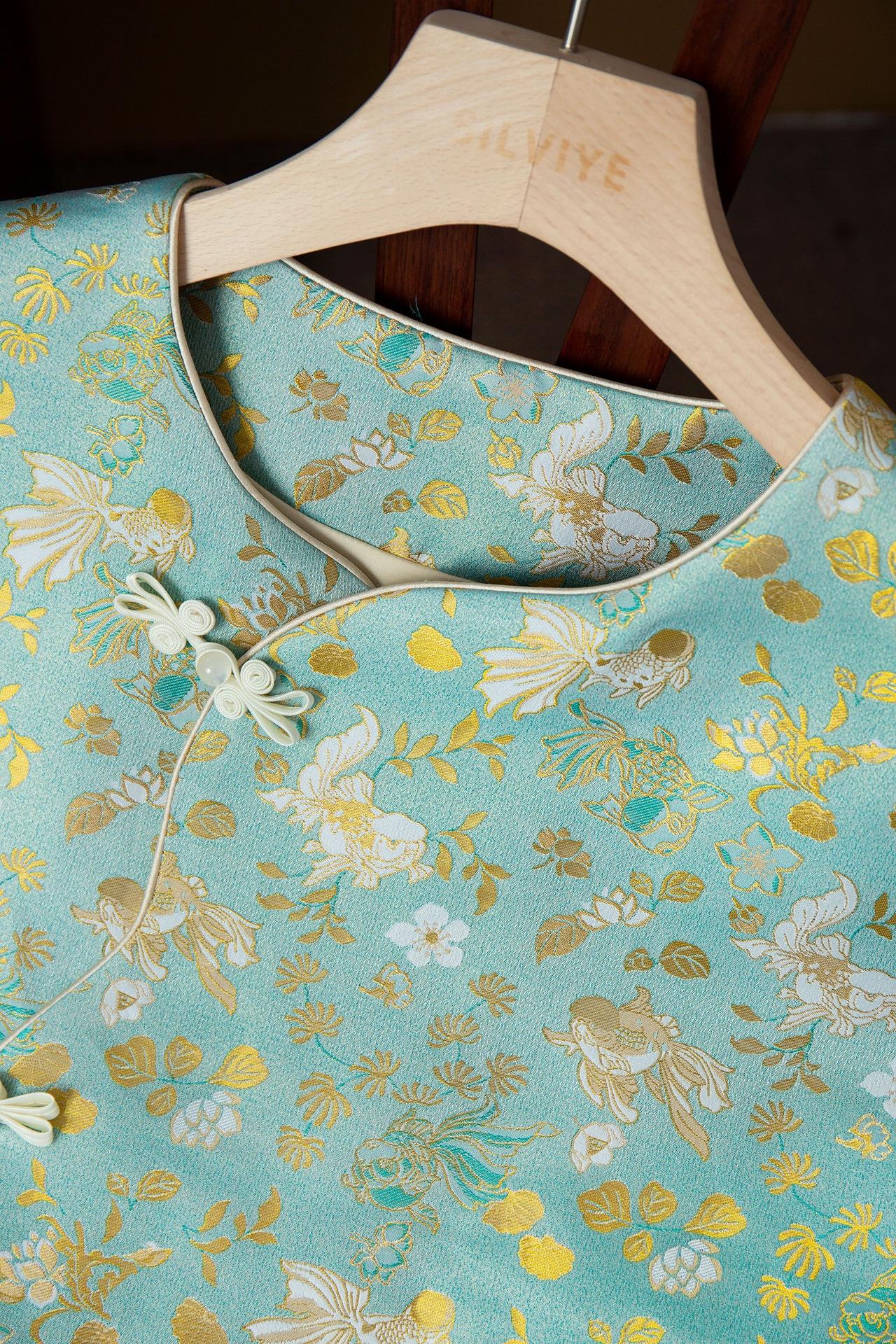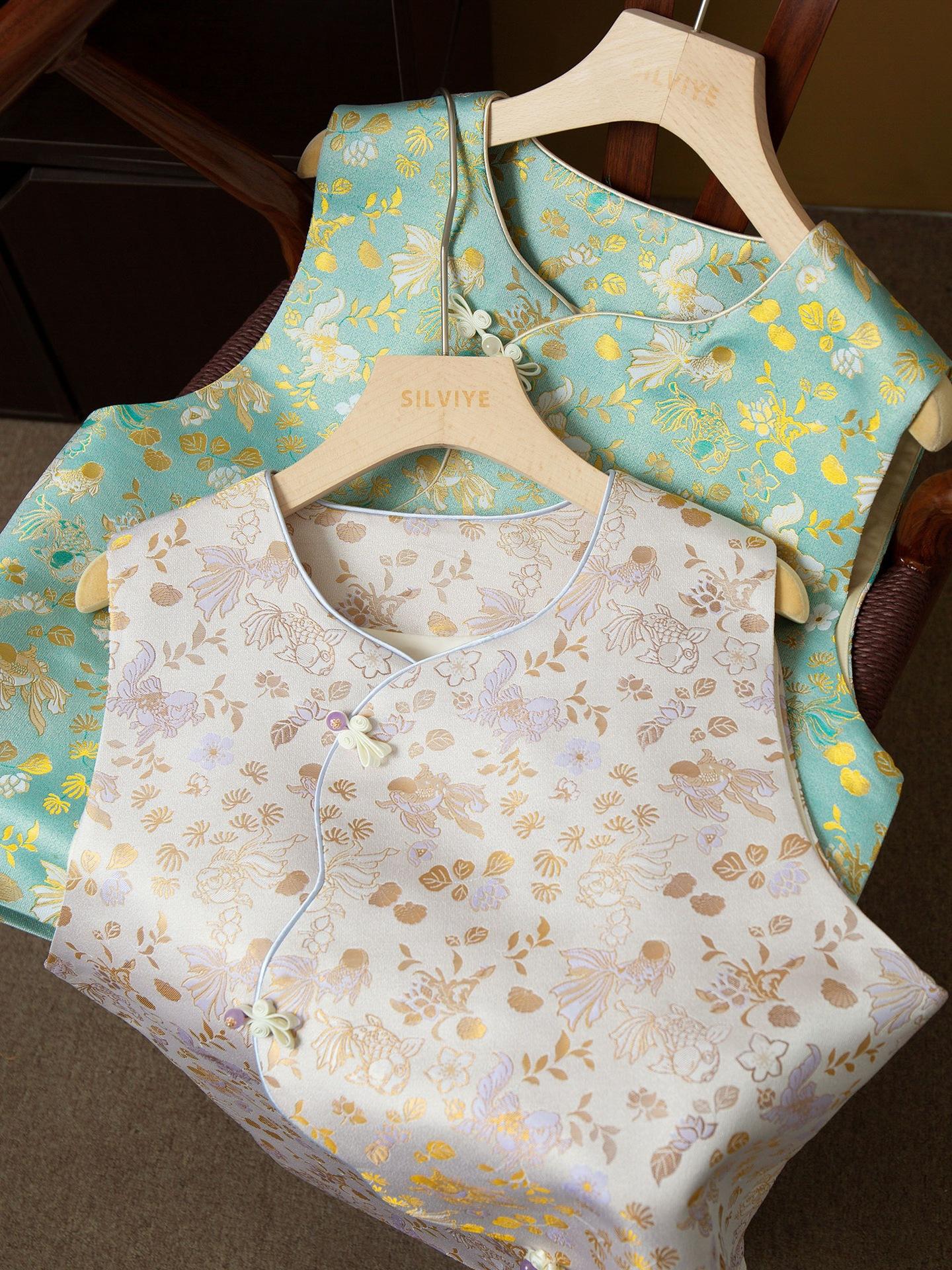 Resumir: Las telas de seda se encogen ligeramente, por lo que se recomienda elegir una talla un poco más suelta al comprar. |