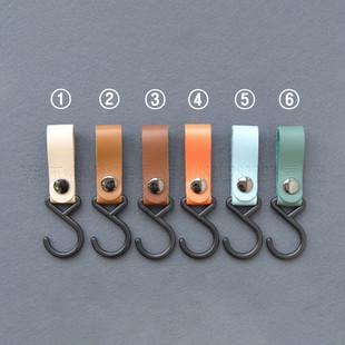 Gancho de cuero para camping al aire libre de 6 colores, estante triangular para picnic, estante para ropa de cocina, llavero para olla y cucharón