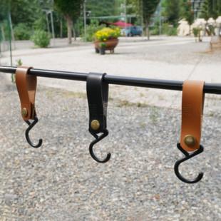 Gancho de cuero para tienda, camping al aire libre, gancho triangular para estante, gancho para utensilios de cocina al por mayor